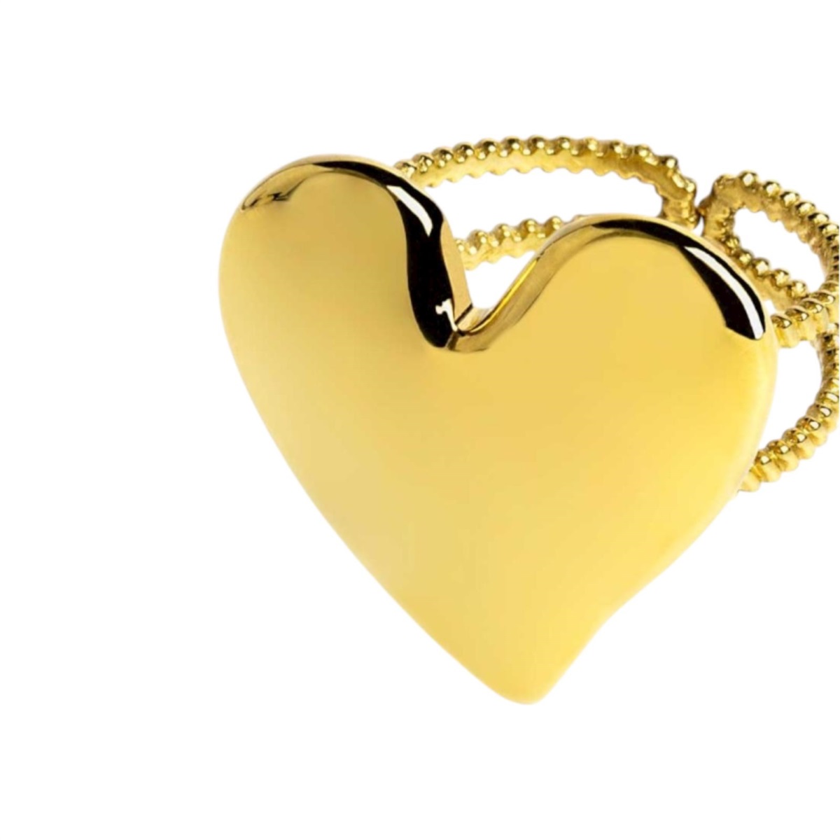 Anello donna Marlù della collezione Vision realizzato in acciaio color oro giallo a doppia fascia con al centro cuore irregolare martellato.