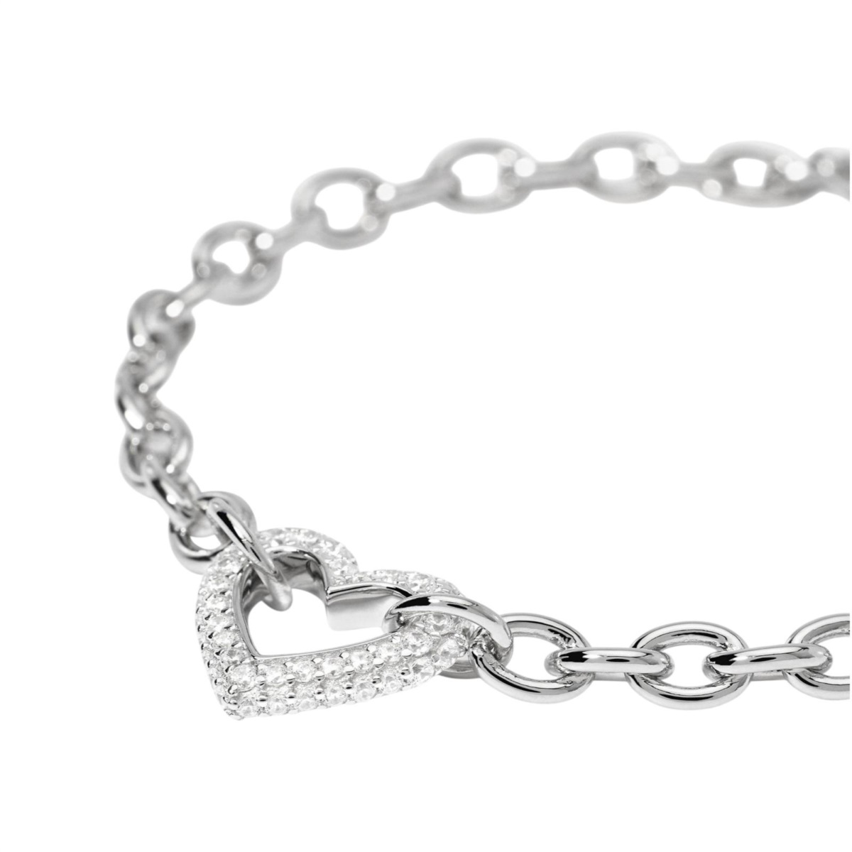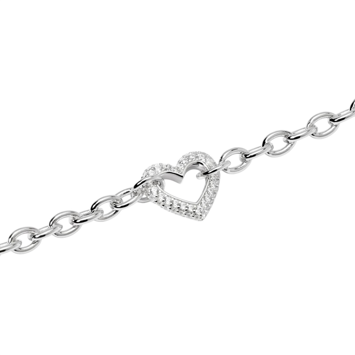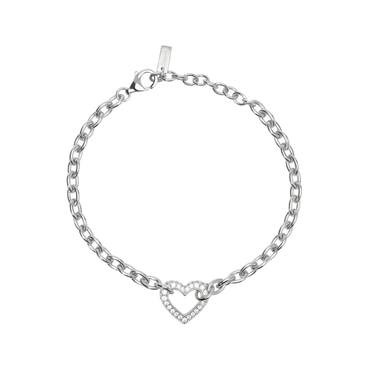 Bracciale donna Mabina della collezione Bubble Heart realizzato in argento rodiato con catena rolò e cuore impreziosito da zirconi bianchi.