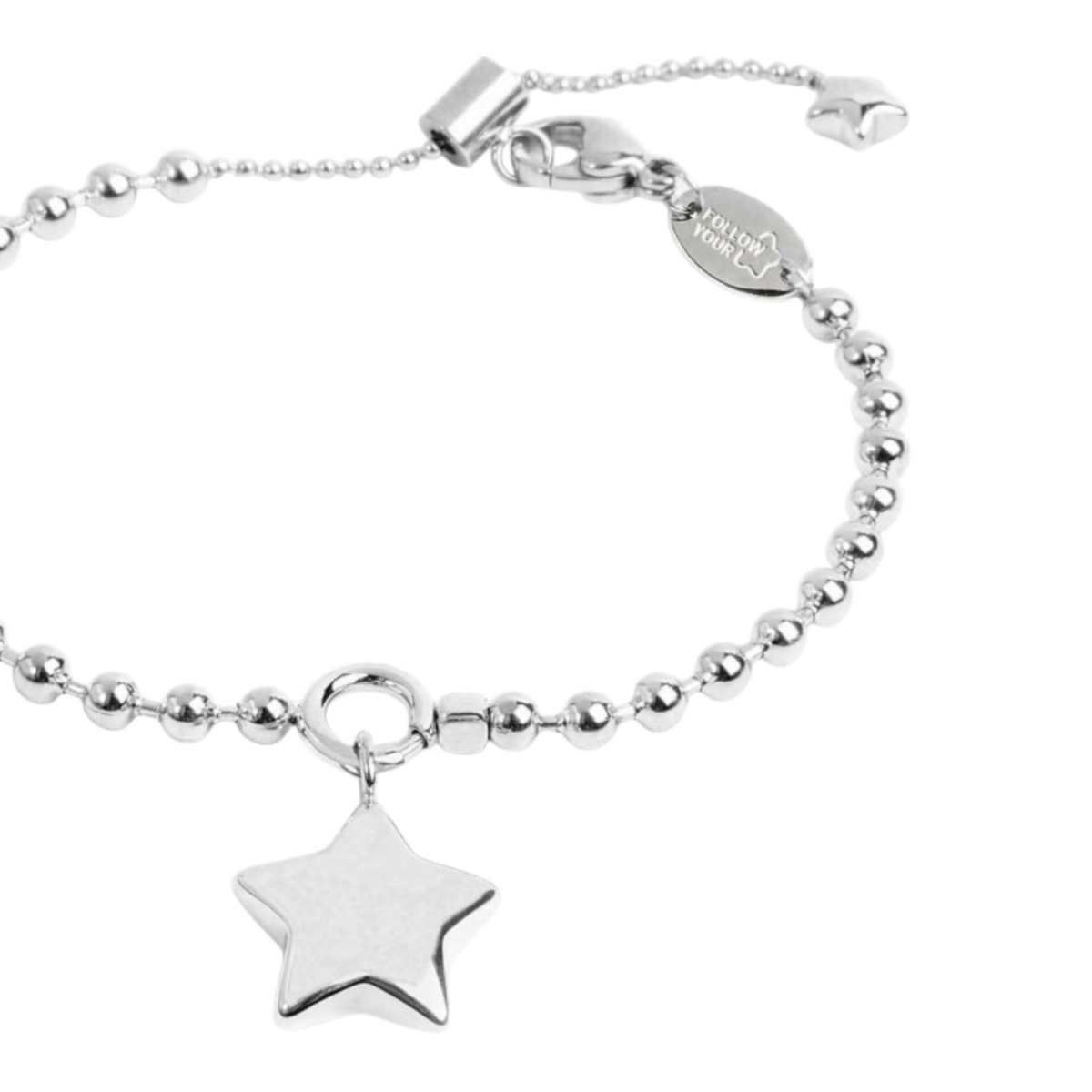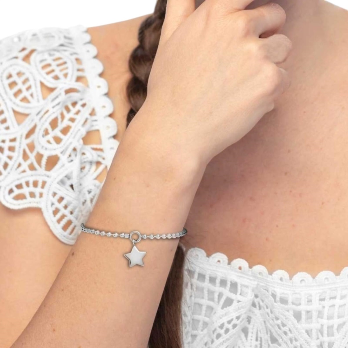 Bracciale donna Marlù della collezione Time To realizzato in acciaio color silver con catena a sfere ed anello centrale con stella pendente.