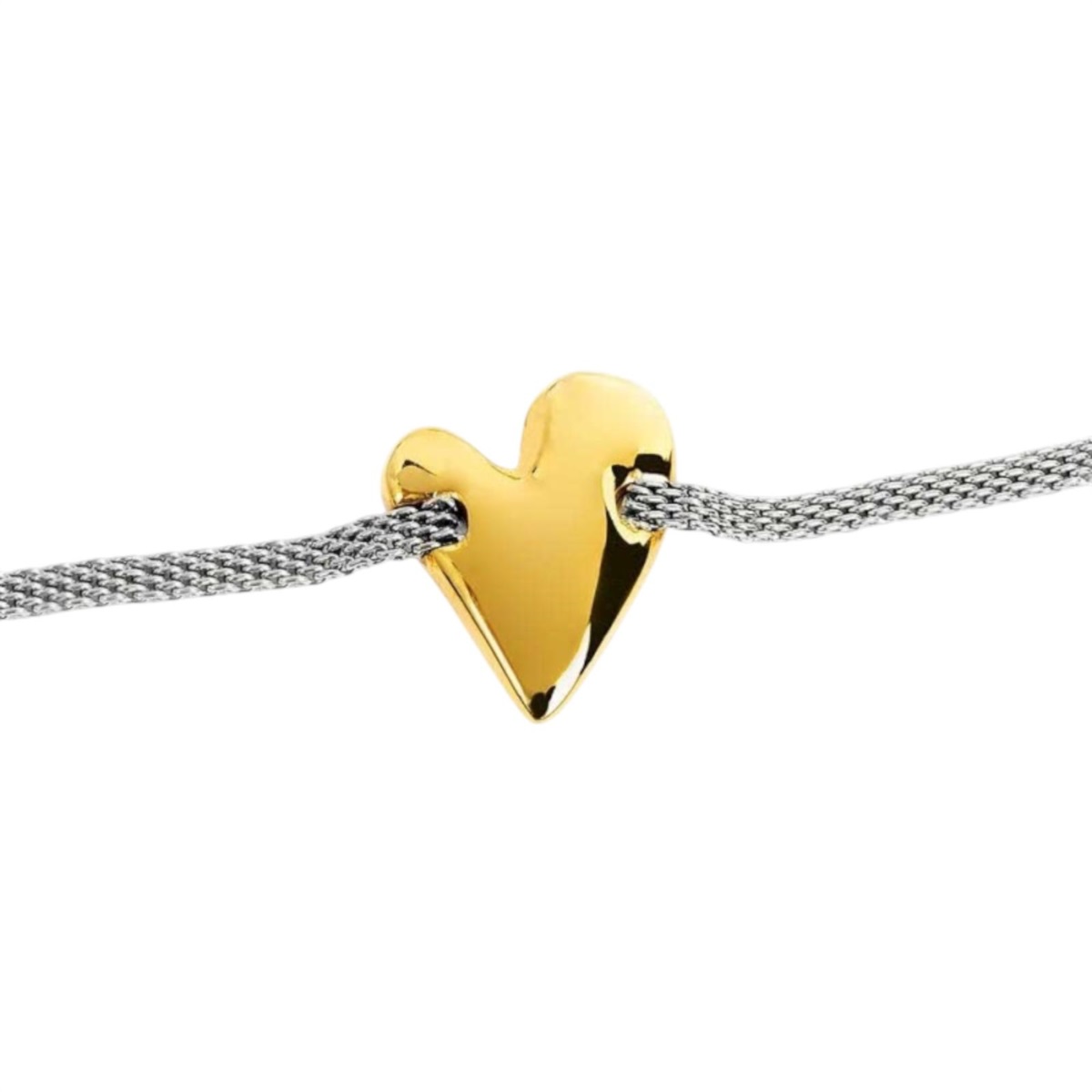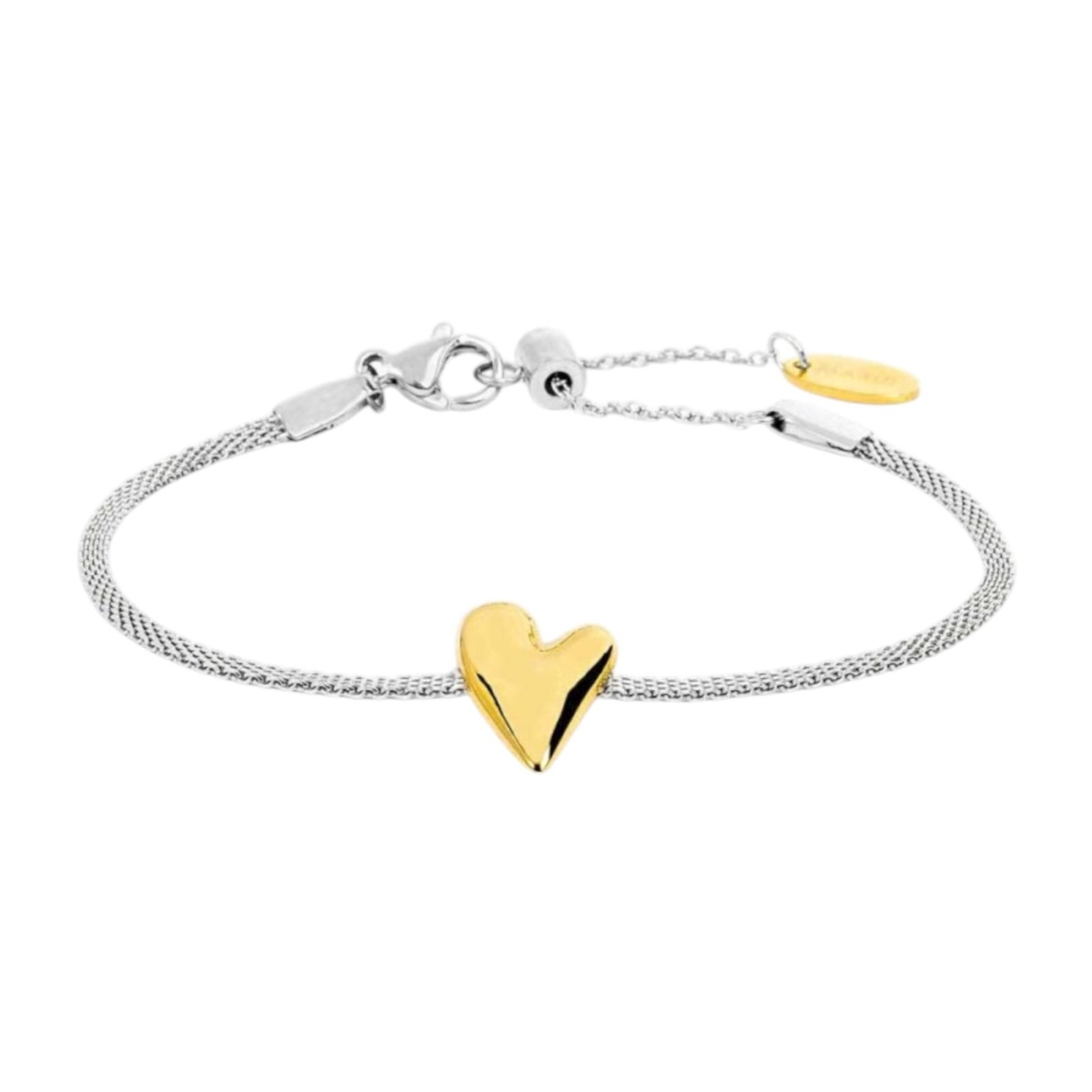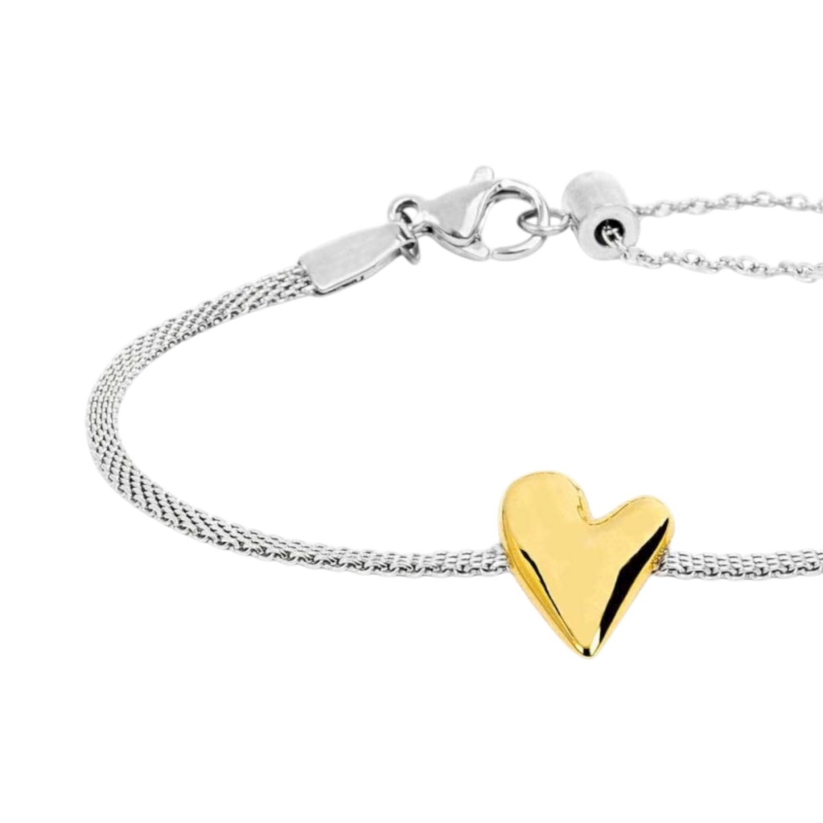 Bracciale donna Marlù della collezione Vision realizzato in acciaio color silver con catena mesh e al centro un cuore irregolare color oro giallo.