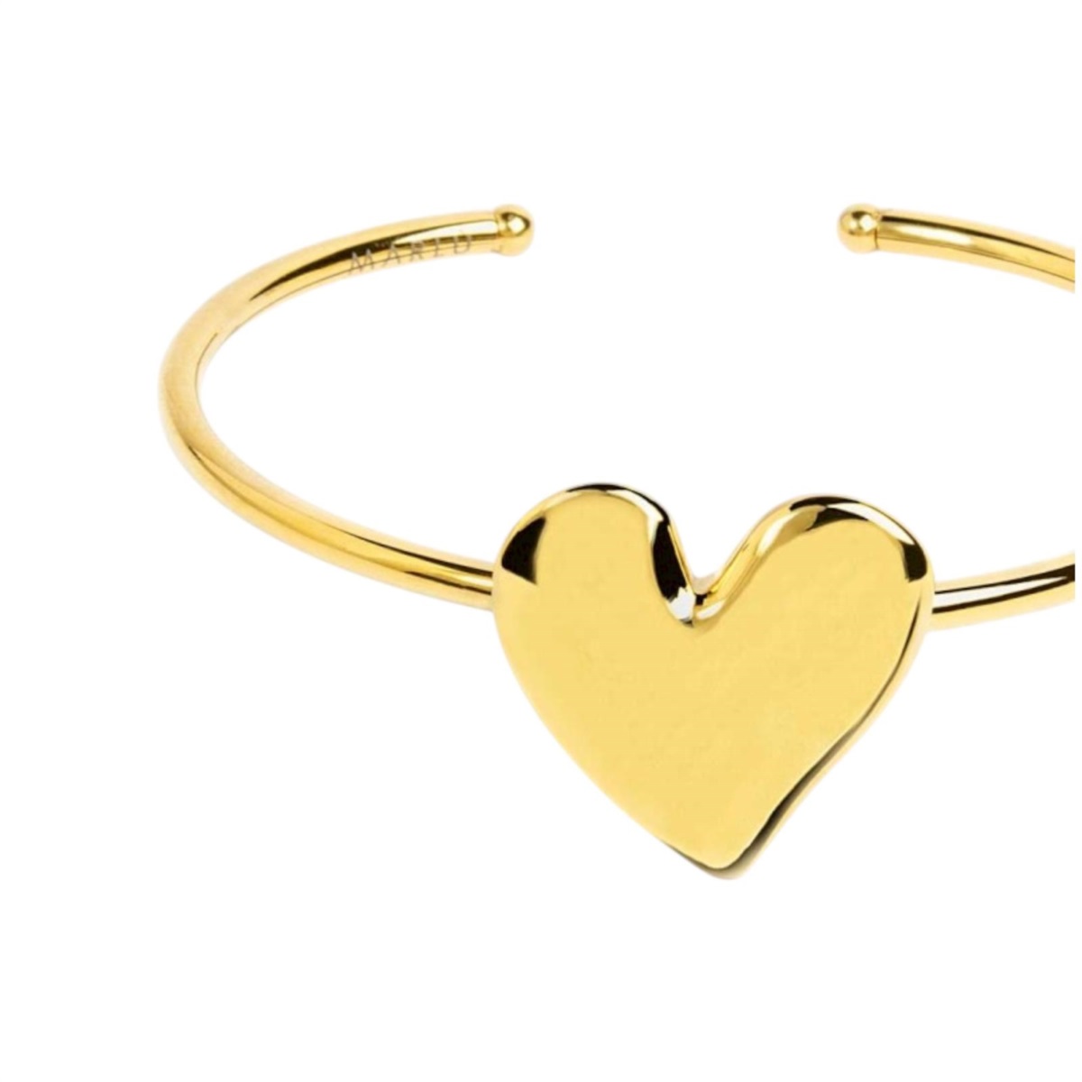 Bracciale rigido donna Marlù della collezione Vision realizzato in acciaio color oro giallo con cuore irregolare centrale.