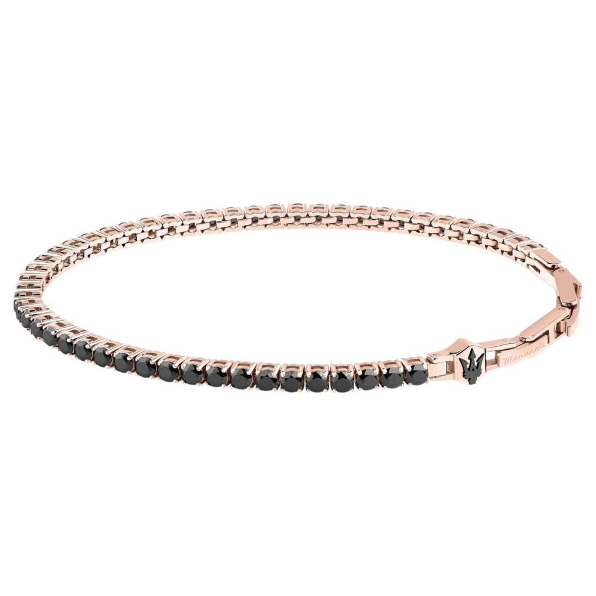 Bracciale uomo Maserati della collezione Tennis realizzato in acciaio color oro rosa con catena tennis impreziosita da zirconi neri.