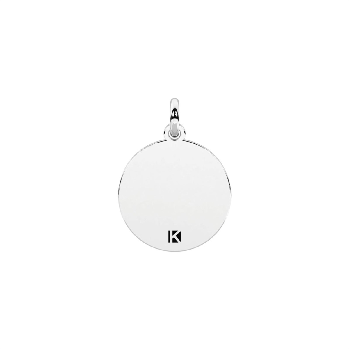Charm donna Kidult By You della collezione Friendship realizzato in acciaio color silver tondo con scritta "Amiche a prima vista" e cristallo bianco.