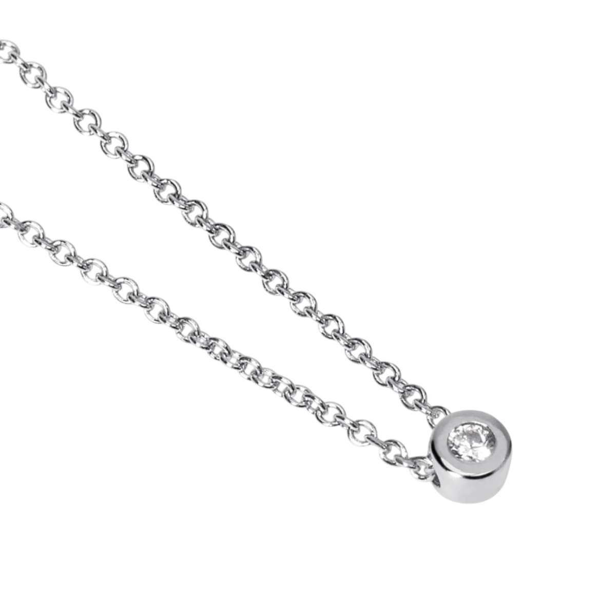 Il pendente, un diamante lab-grown da 0,08 carati finemente incastonato in un cerchio, cattura la luce con una brillantezza straordinaria, trasformando la semplicità in un segno distintivo di classe. Questo punto luce è l’emblema di una bellezza autentica e consapevole, pensato per chi ama la purezza dei dettagli e la luminosità discreta di un gioiello intramontabile.