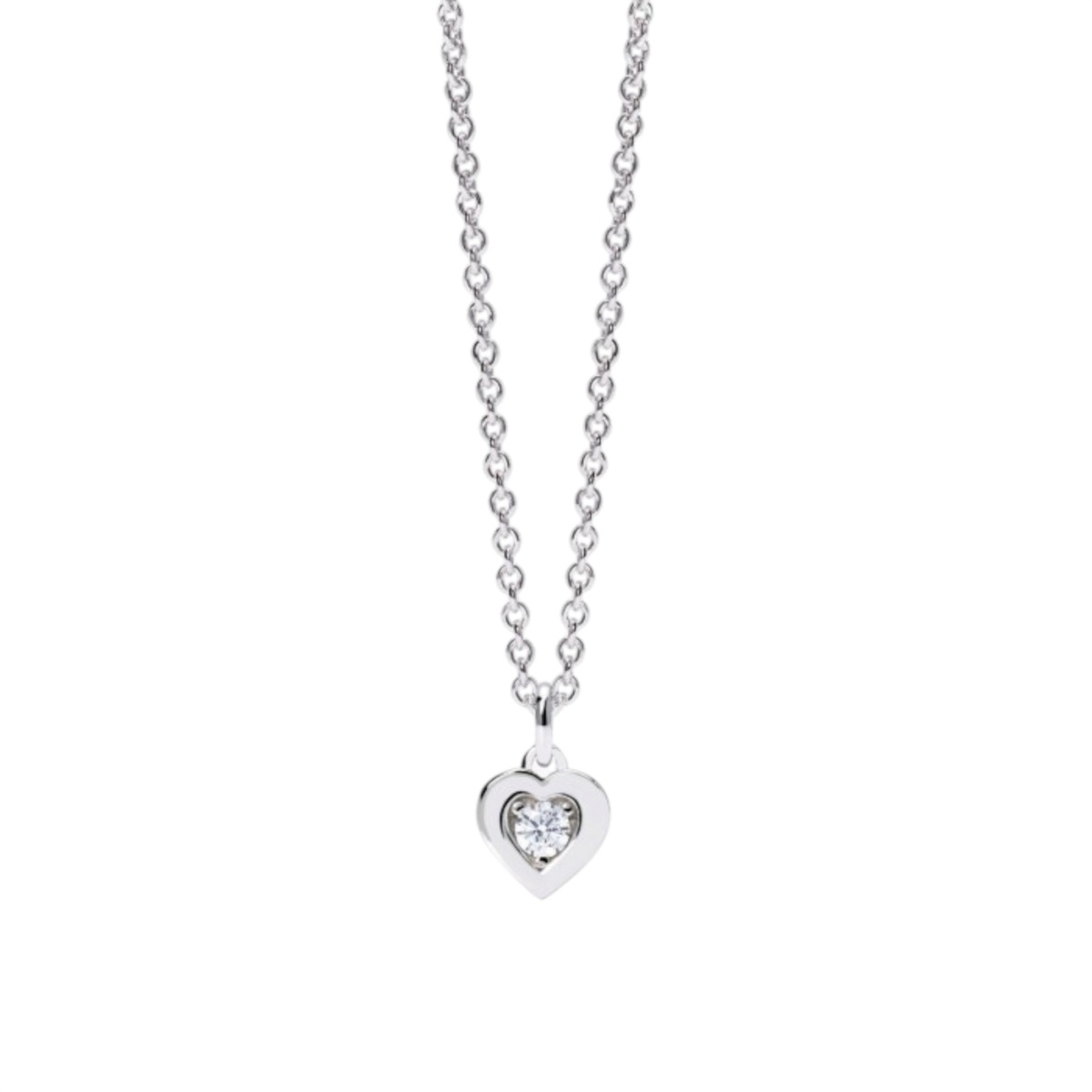 Il pendente a forma di piccolo cuore custodisce al suo interno un diamante lab-grown incastonato da 0,06 carati, che sprigiona una brillantezza autentica e raffinata. La lucentezza del diamante coltivato in laboratorio si fonde con la luminosità dell’argento rodiato, creando un gioiello che racconta emozioni, eleganza e consapevolezza.