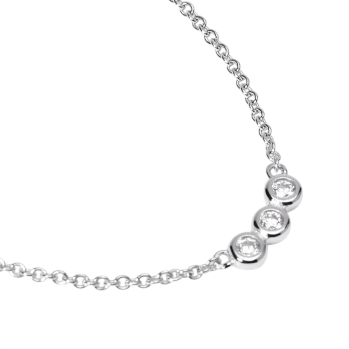 Collana Punto Luce Mabina in Argento 925 Rodiato con 3 Diamanti Lab-Grown 0,08 ct Incastonati in 3 Cerchi – Collezione My DiamondLuminosità e raffinatezza si incontrano nella collana punto luce Mabina in argento 925 rodiato, un gioiello dal design essenziale e sofisticato che illumina ogni look con eleganza. La catena, lunga da 39 a 43 cm, è dotata di chiusura con moschettone regolabile, per garantire una vestibilità confortevole e perfetta su ogni scollatura.