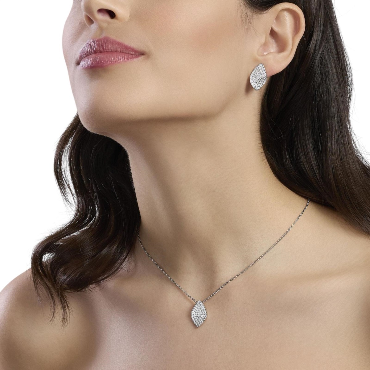 Collana donna Mabina della collezione Come Te realizzata in argento rodiato con catena rolò e foglia in pavè di zirconi bianchi.