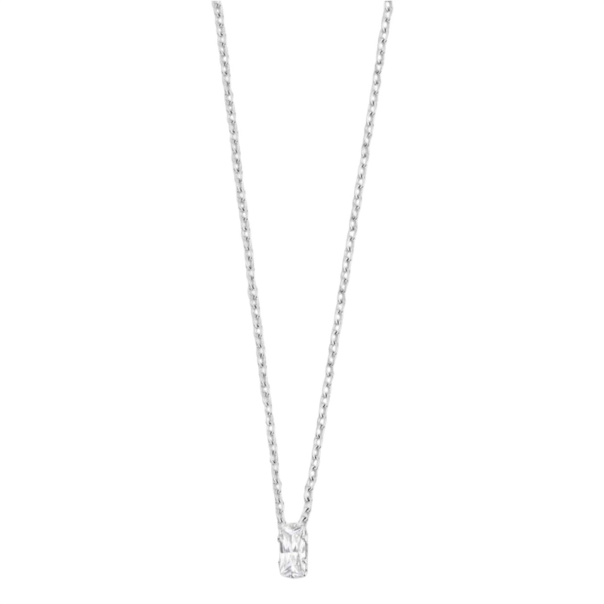 Collana donna Marlù della collezione Sparkles realizzata in acciaio color silver con catena "O" e uno zircone color bianco taglio baguette.