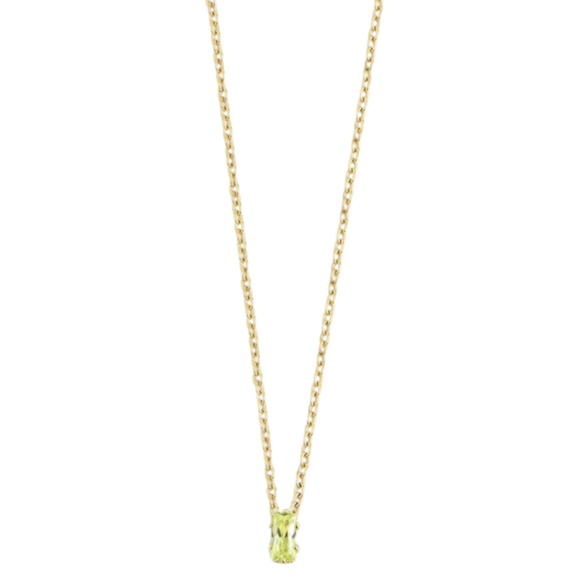Collana donna Marlù della collezione Sparkles realizzata in acciaio color oro giallo con catena "O" e uno zircone color lime taglio baguette.