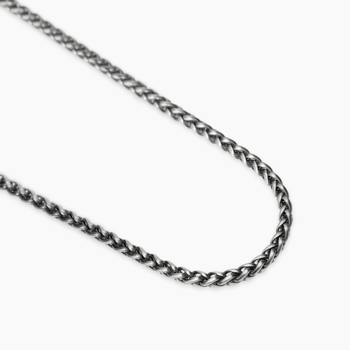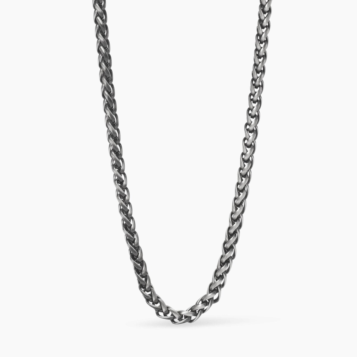 Collana da uomo con catena a spiga in acciaio 316L e finitura gunmetal – Collezione >Aggiungi un tocco di carattere al tuo look con questa collana Kidult >, parte della collezione >, pensata per l’uomo che ama distinguersi con accessori moderni e di qualità. La catena a spiga da 4 mm combina eleganza e robustezza, mentre la finitura PVD gunmetal regala un effetto scuro e contemporaneo, perfetto per outfit casual o più ricercati.