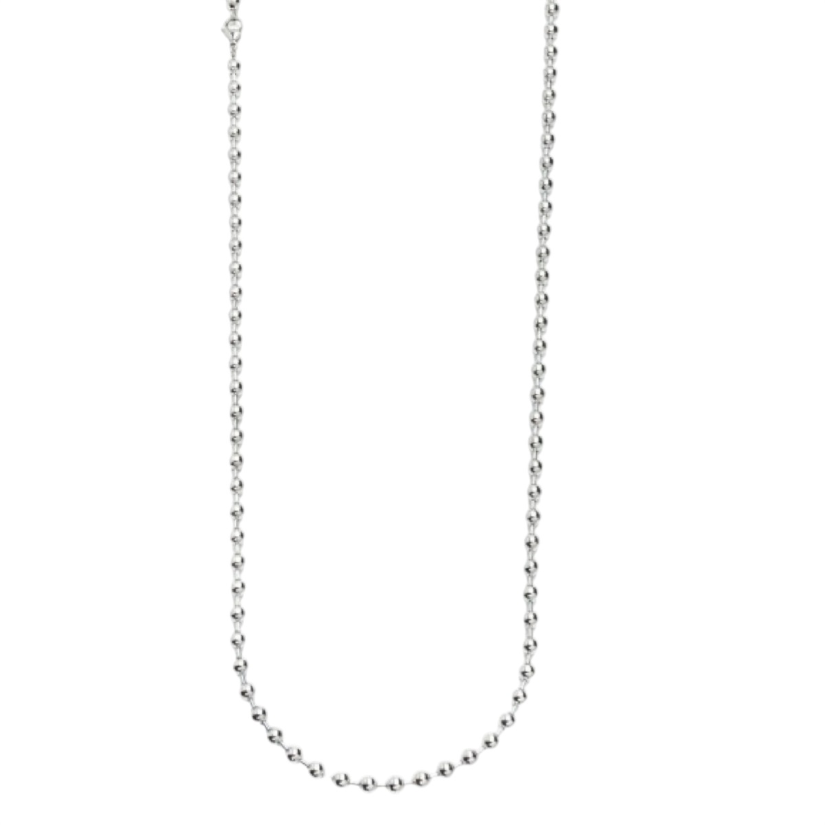 Il gioiello è in acciaio inossidabile 316L composto da catena a pallini grandi con targhetta Namastè. Lunghezza: 75+15 cm. Per una lunghezza totale di 90cm
