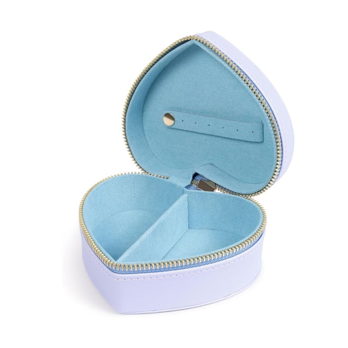 Questo porta gioielli a forma di cuore è realizzato con materiali resistenti e curato nei minimi dettagli.La struttura esterna lilla è impreziosita da una zip orizzontale centrale che permette di aprire e chiudere facilmente la scatolina, rendendola ideale anche da portare in viaggio o nello zainetto.