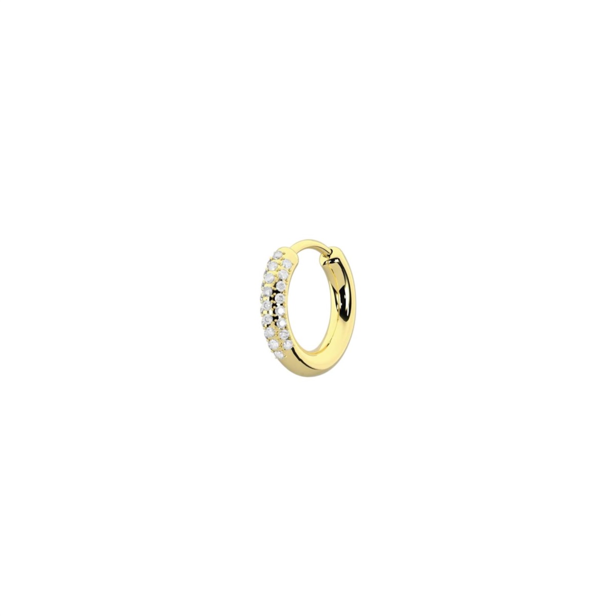 Mono orecchino componibile donna Kidult della collezione Kiss Me realizzato in acciaio color oro giallo a cerchio impreziosito da cristalli bianchi.
