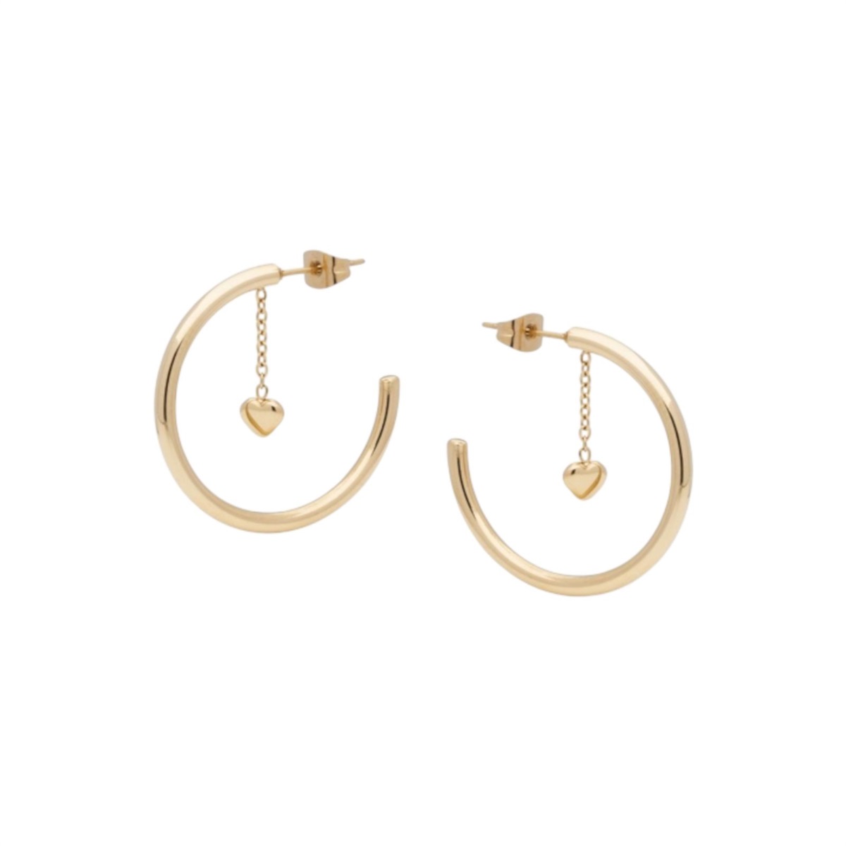 Orecchini donna Liu Jo della collezione Essential Woman realizzati in acciaio color oro giallo a semicerchio con cuore pendente.