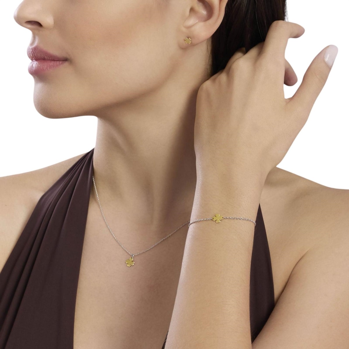 Orecchini donna Mabina della collezione Colpo Di Fortuna realizzati in oro 9K a forma di quadrifoglio a chiusura in argento.
