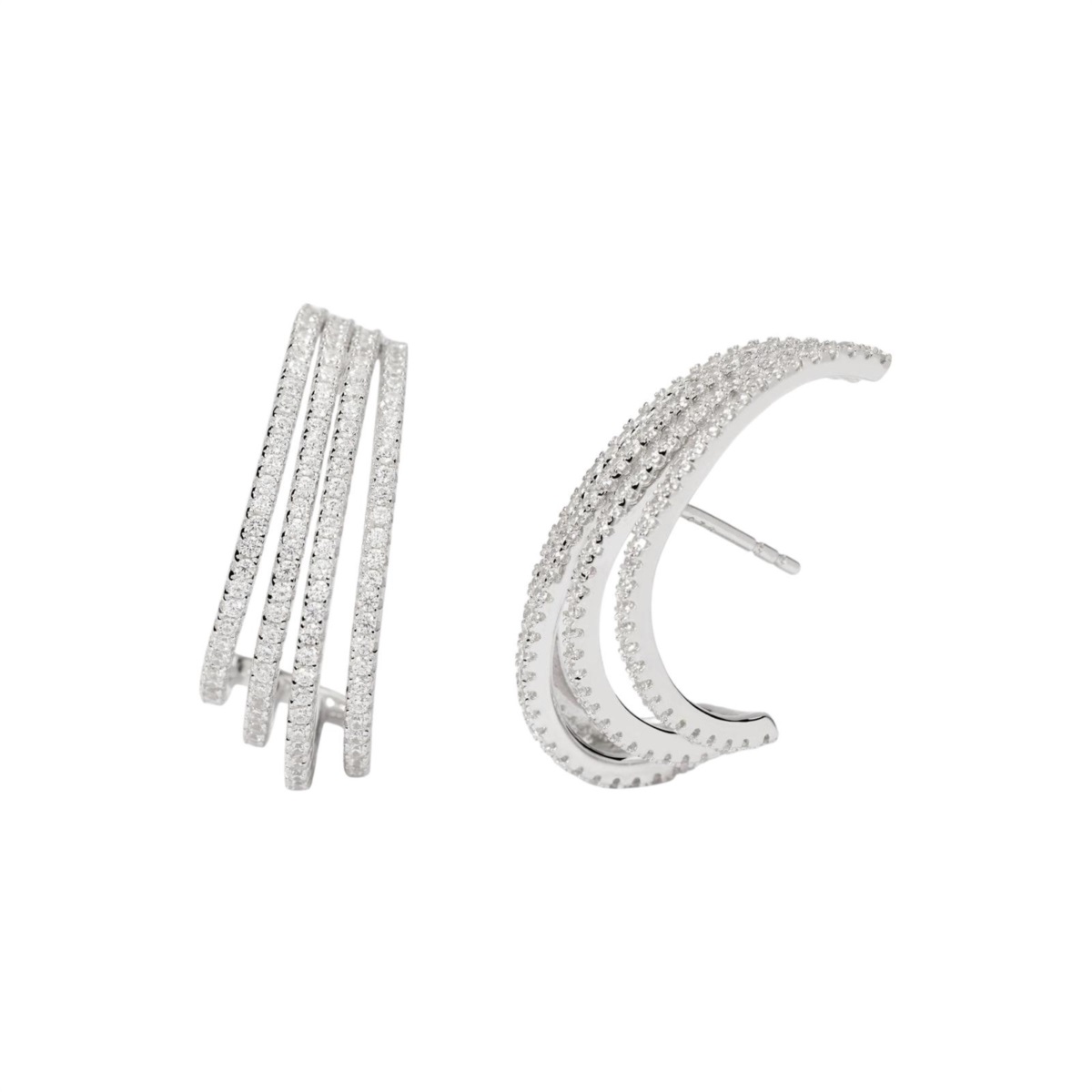Orecchini donna Mabina della collezione Colpo Di Fulmine realizzati in argento rodiato a semicerchio impreziositi da zirconi bianchi.
