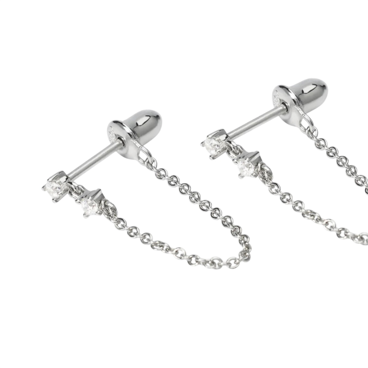 Sotto il diamante, una sottile catena mobile si collega all’asta posteriore dell’orecchino, creando un effetto dinamico e armonioso a forma di “altalena”. Il risultato è un gioiello elegante e originale, perfetto per chi ama unire modernità e romanticismo in un unico accessorio.La chiusura a perno con gommino interno garantisce una vestibilità sicura e confortevole per un uso quotidiano o nelle occasioni speciali.