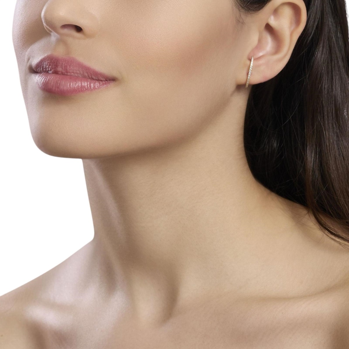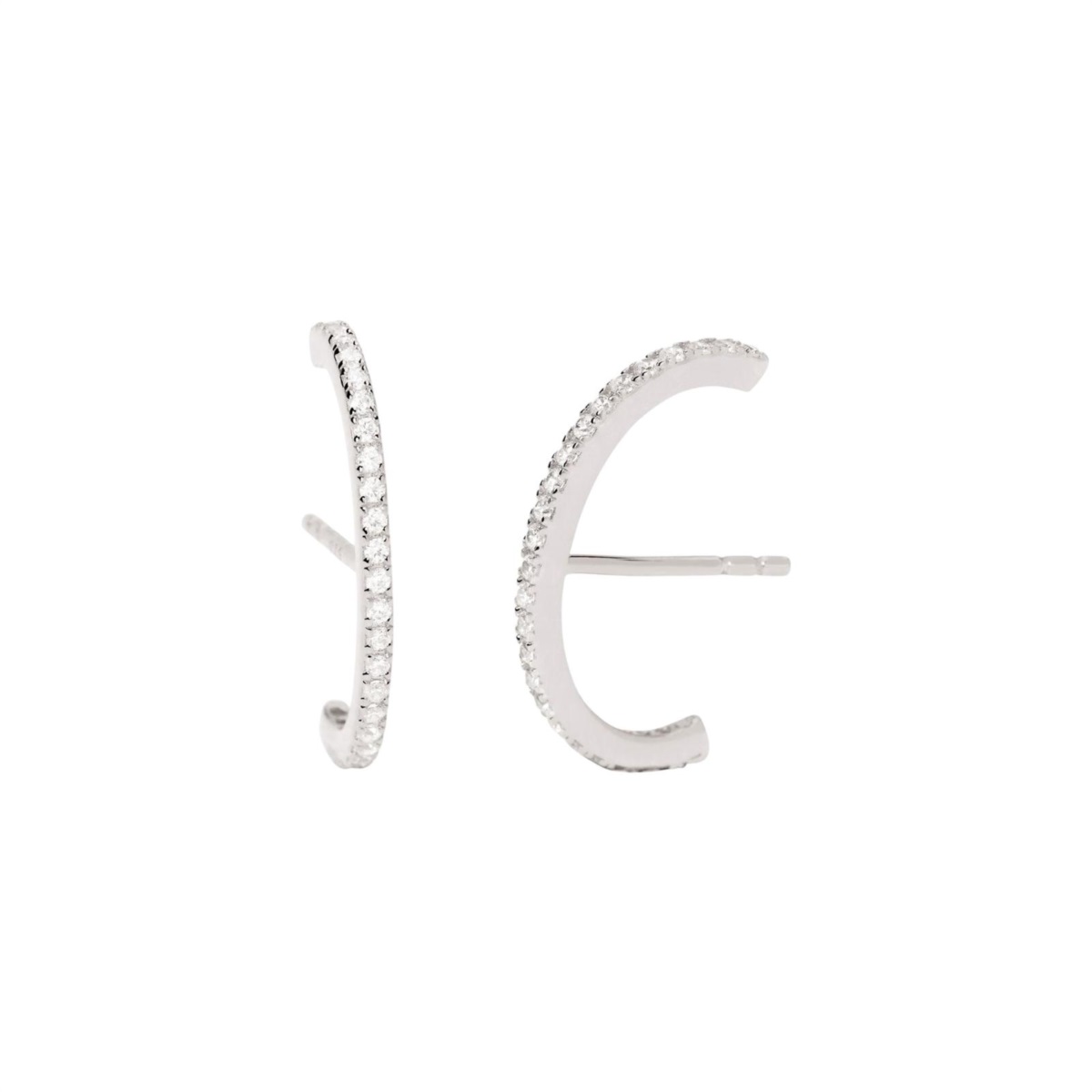 Orecchini donna Mabina della collezione Raggio Di Sole realizzati in argento rodiato a semicerchio impreziositi da zirconi bianchi.