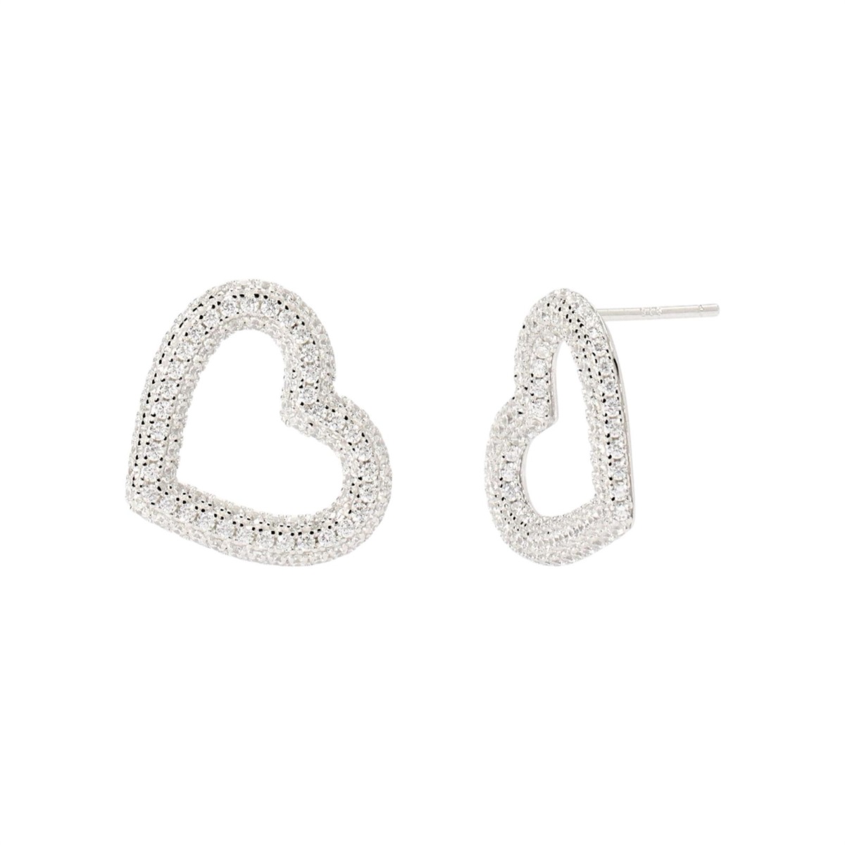 Orecchini donna Mabina della collezione Vera realizzati in argento rodiato a forma di cuore impreziosito da zirconi bianchi.