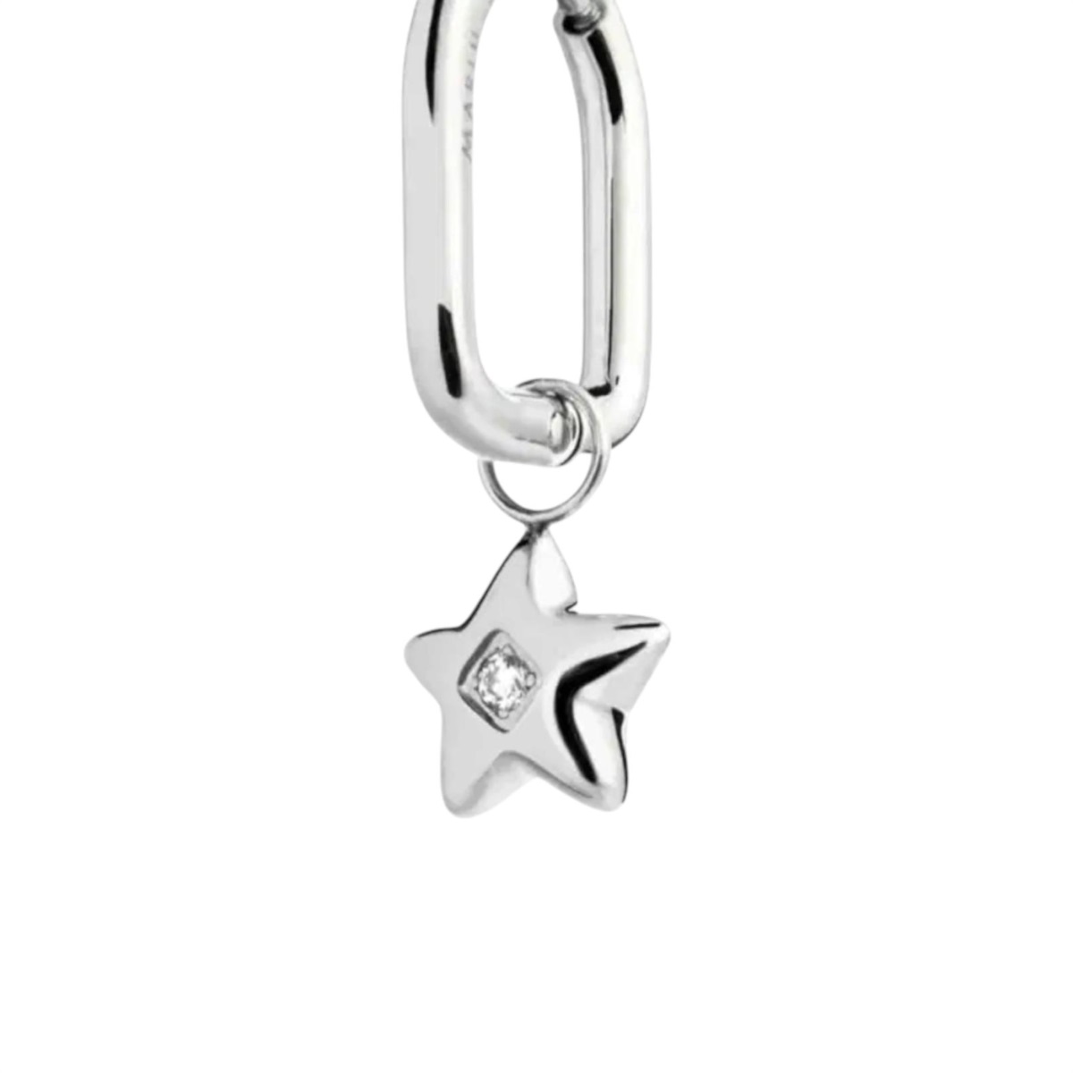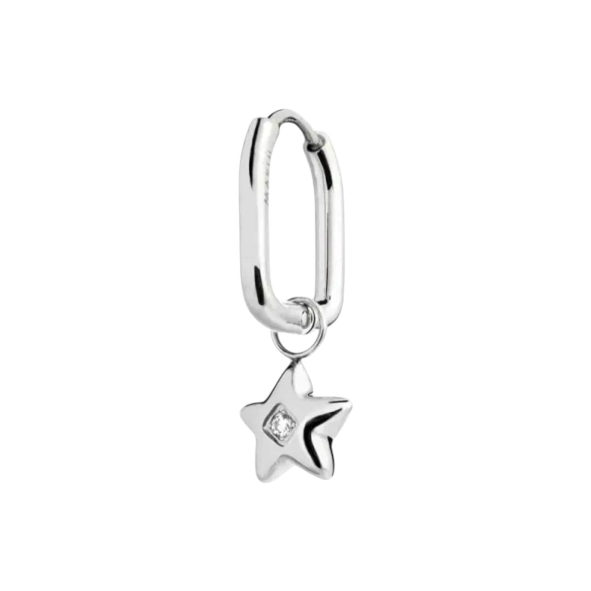 Mono orecchino donna Marlù della collezione Time To realizzato in acciaio color silver a cerchio ovale con pendente a forma di stella impreziosito da un cristallo bianco.