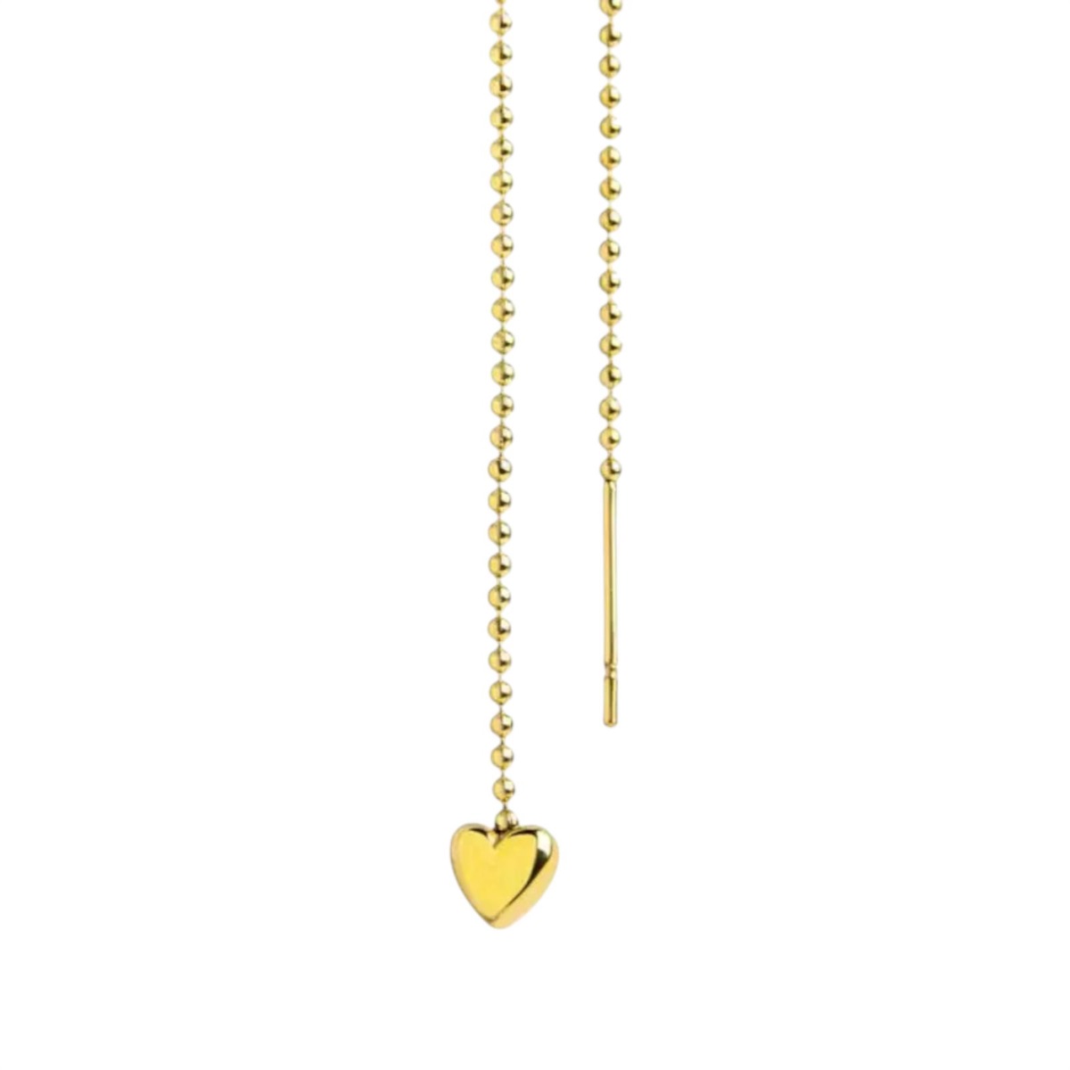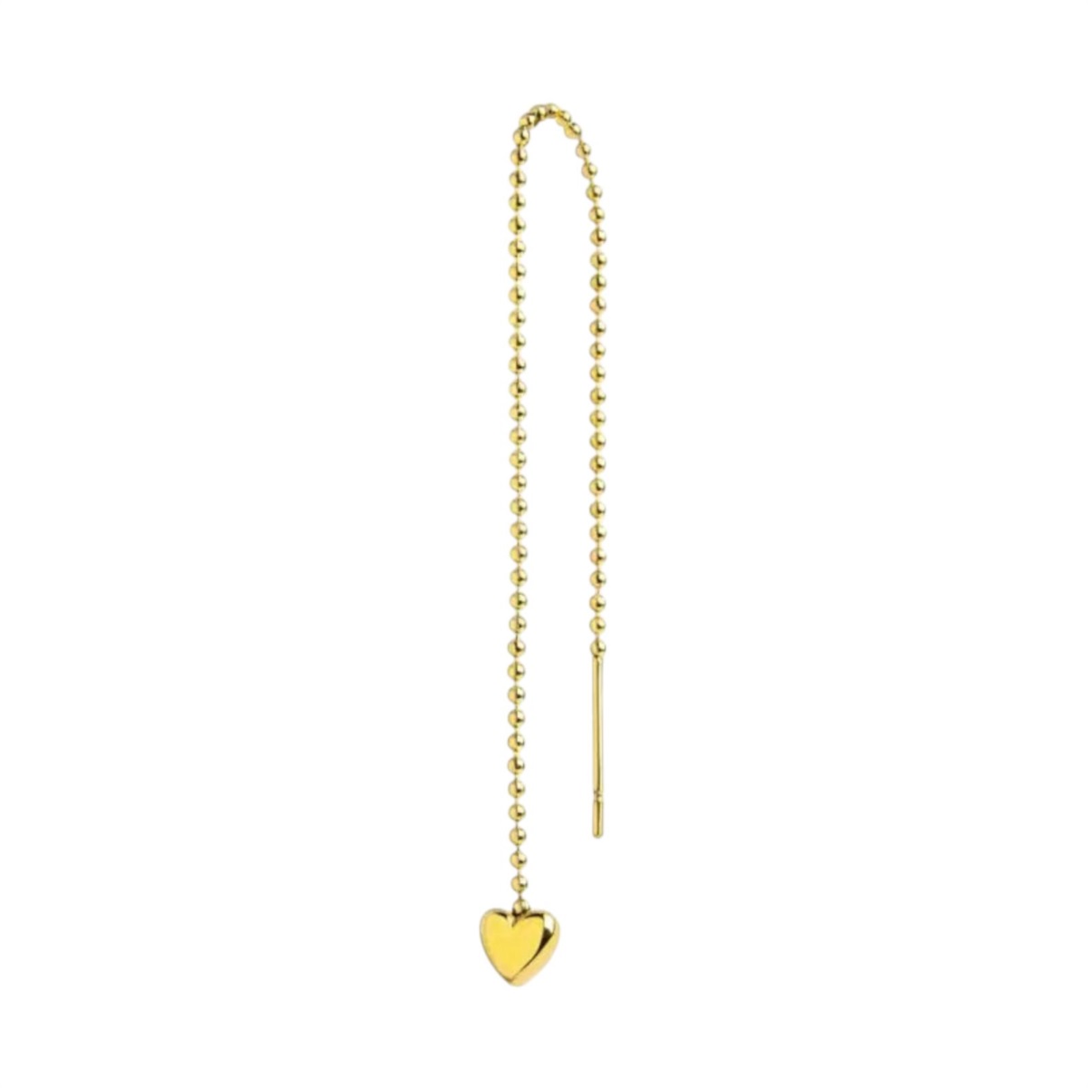 Mono orecchino donna Marlù della collezione Time To realizzato in acciaio color oro giallo con catena a sfere e cuore pendente.