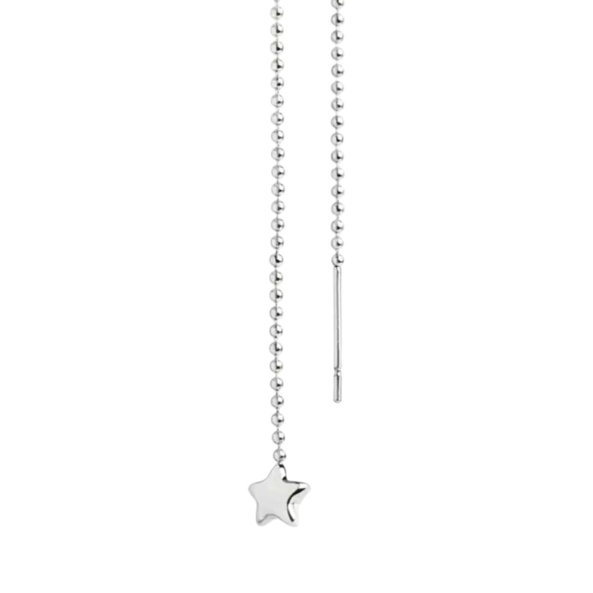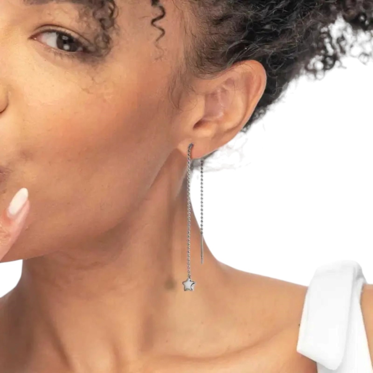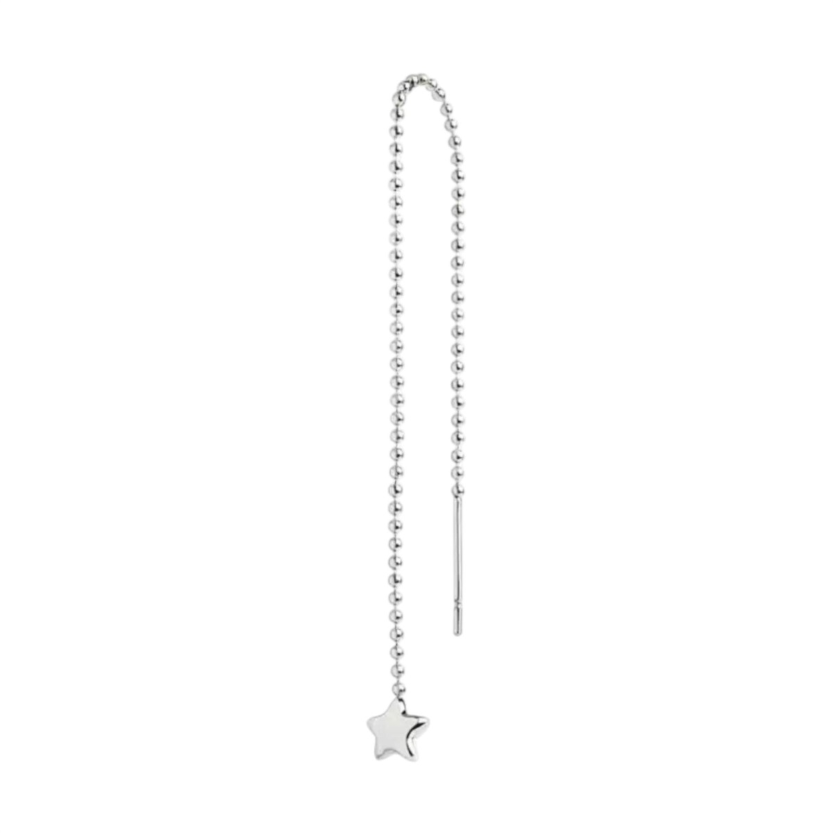 Mono orecchino donna Marlù della collezione Time To realizzato in acciaio color silver con catena a sfere e stella pendente.