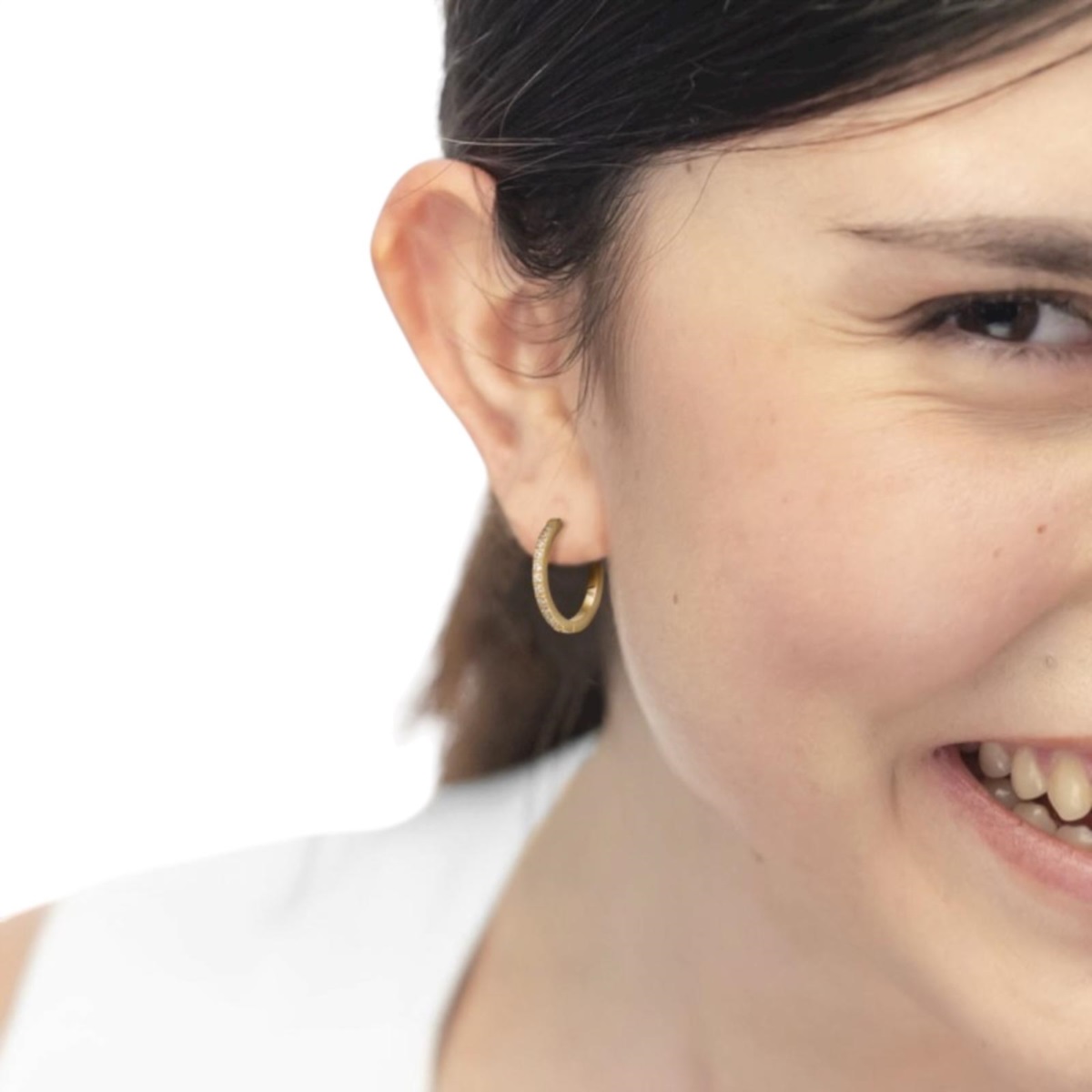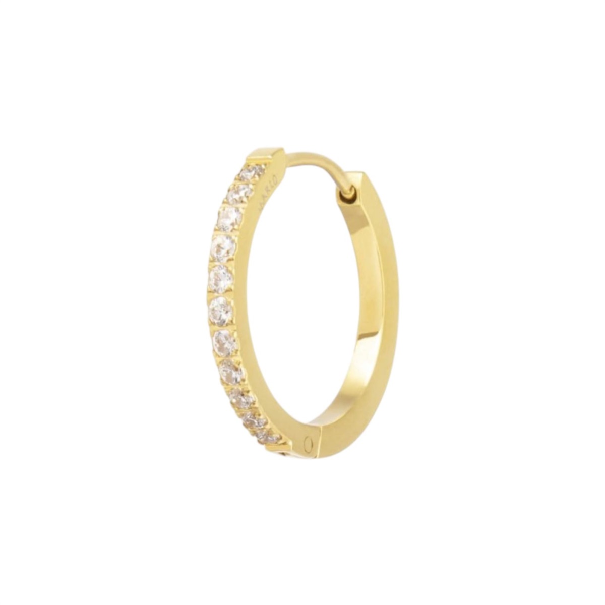 Mono orecchino donna Marlù della collezione Vision realizzato in acciaio a cerchio color oro giallo impreziosito da zirconi bianchi.