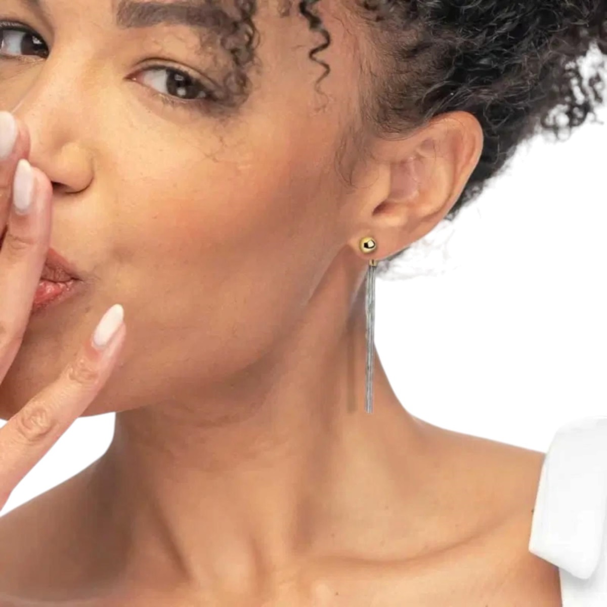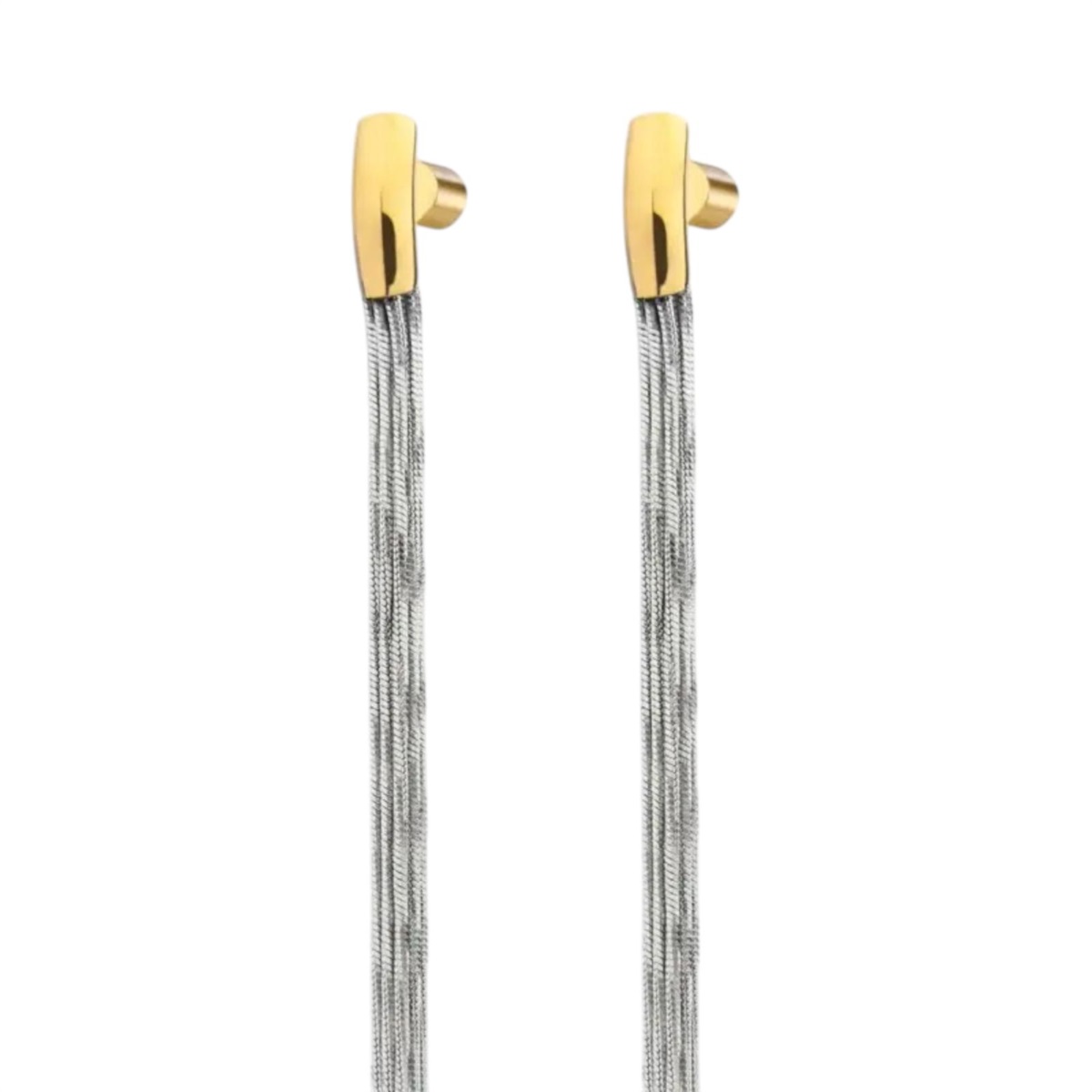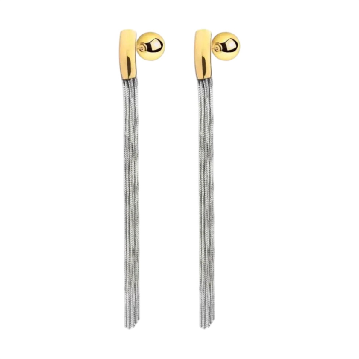 Orecchini donna Marlù della collezione Vision realizzati in acciaio color oro giallo con catena multifilo in acciaio color silver e doppia chiusura, sia a perno con gommino all'interno che a sfera.