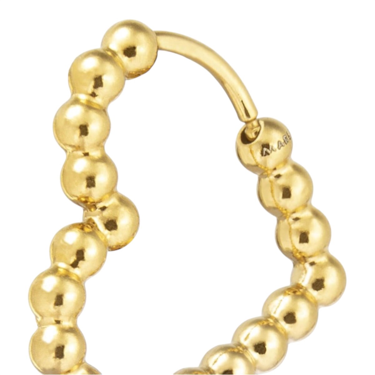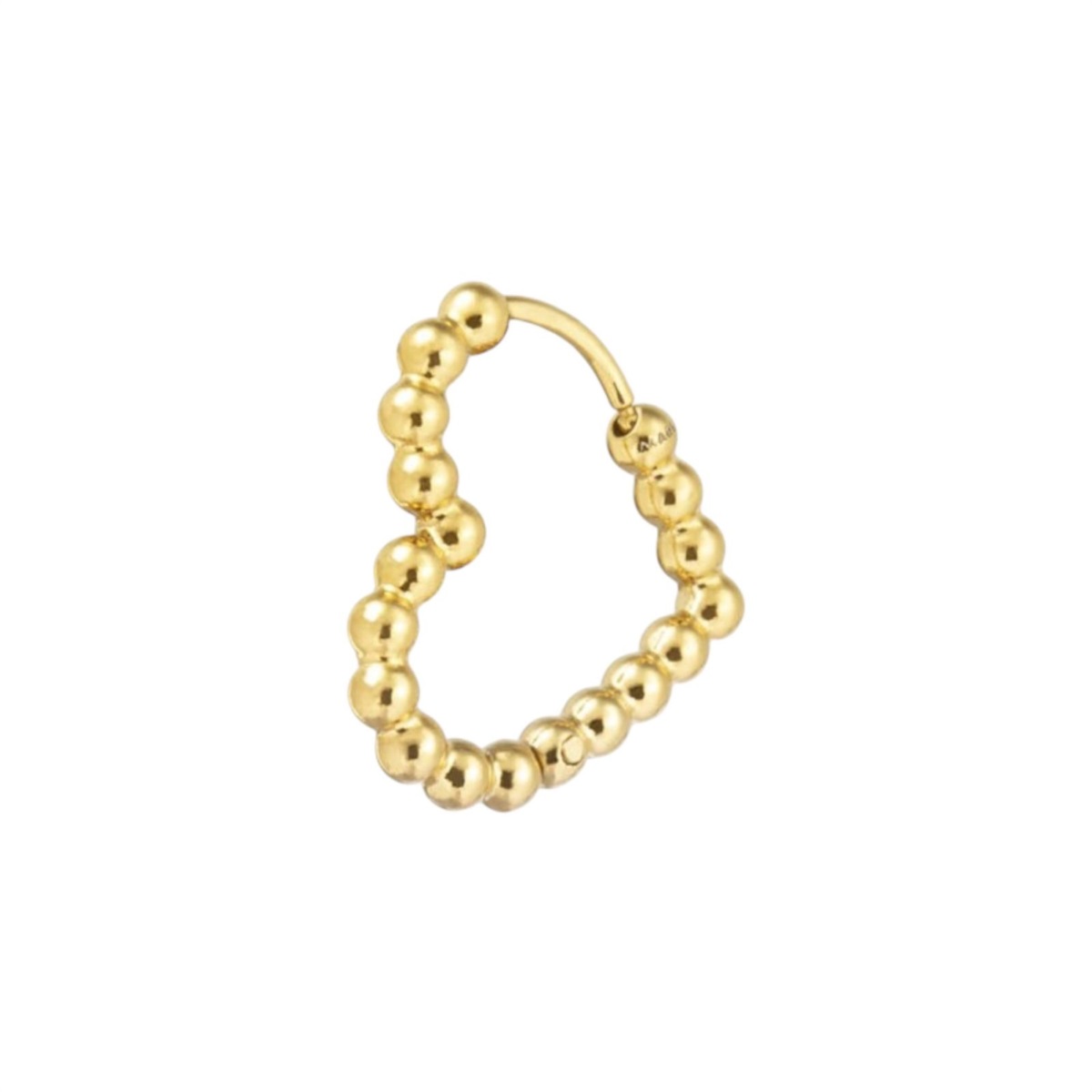 Mono orecchino donna Marlù della collezione Vision realizzato in acciaio color oro giallo a forma di cuore con trama a sfere.