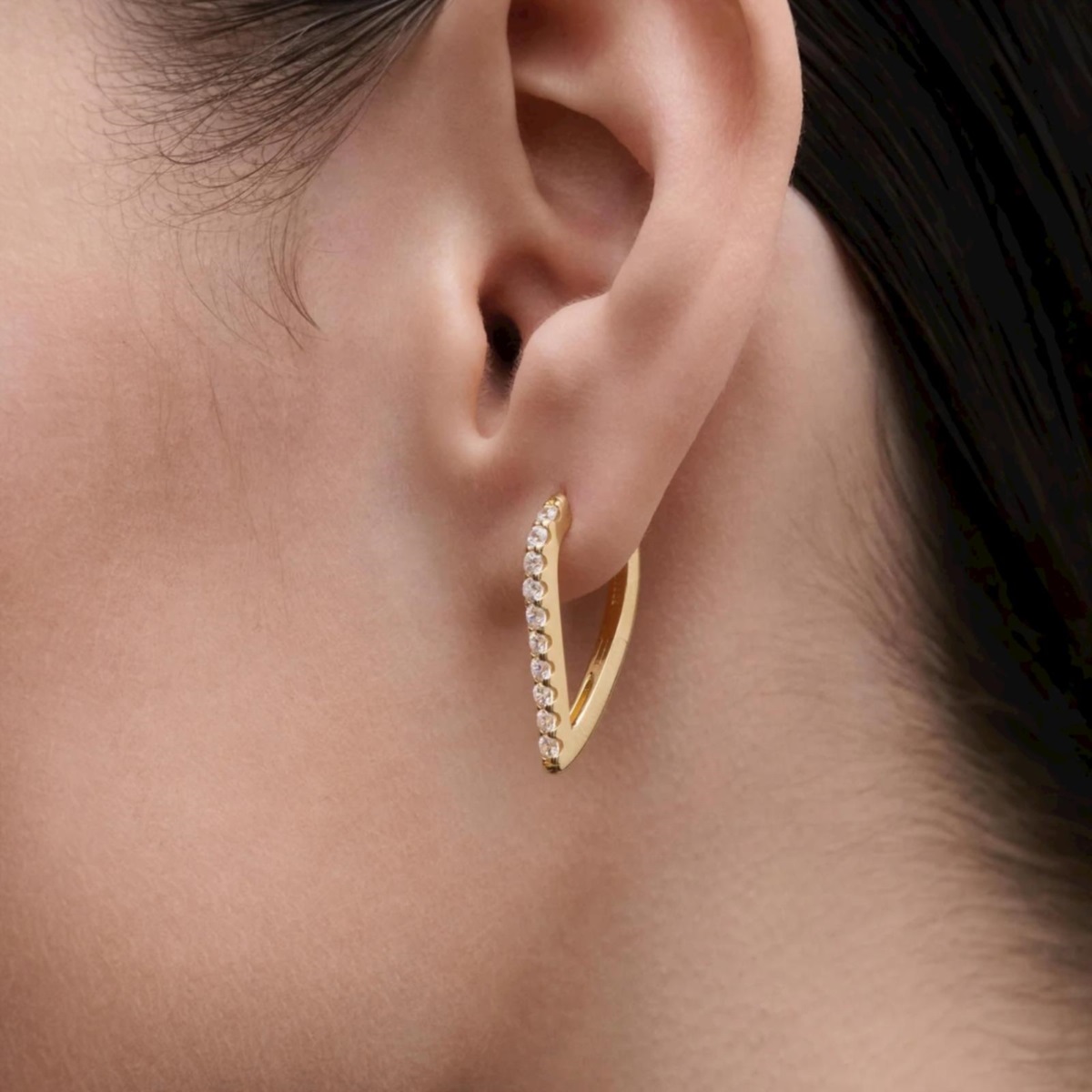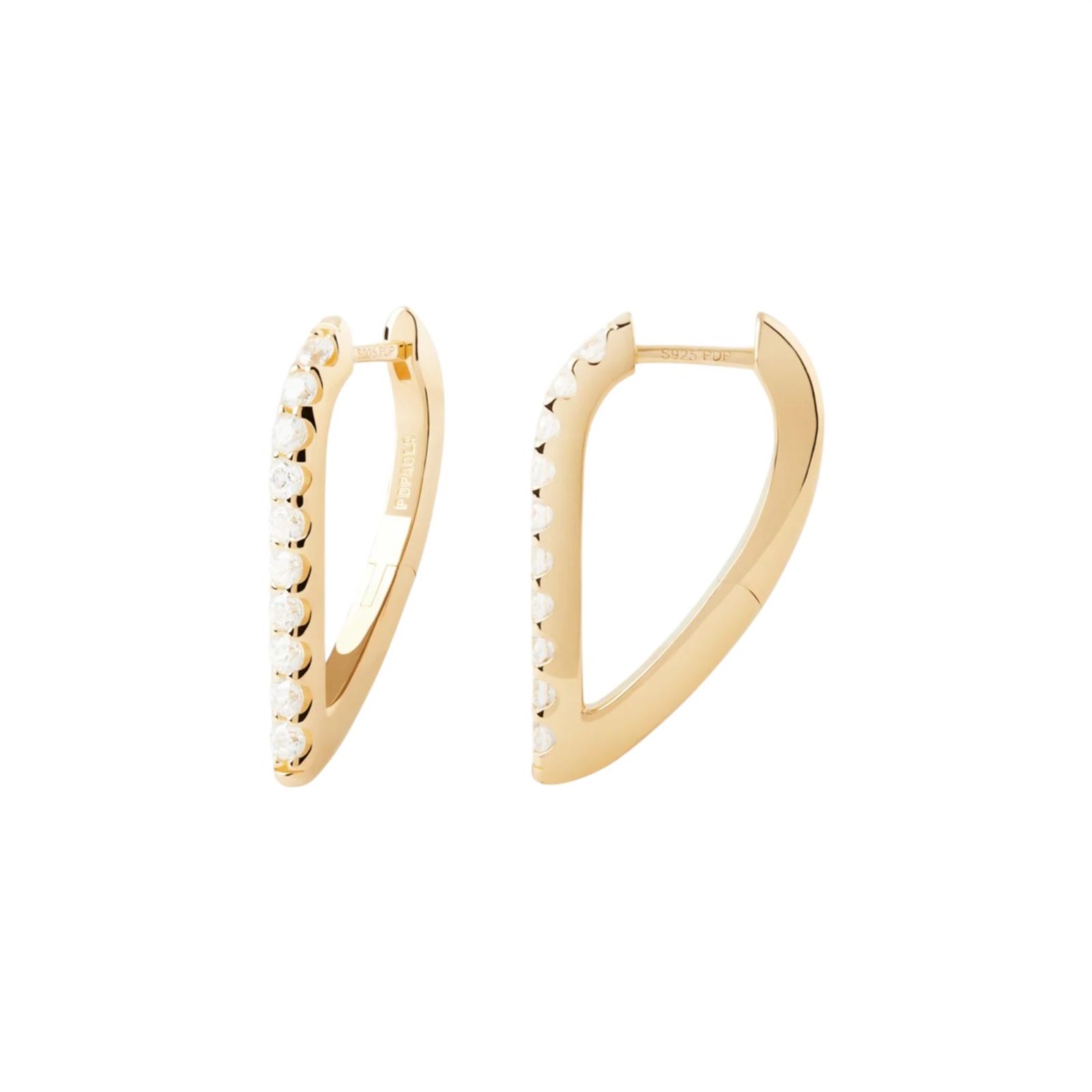 Orecchini donna PDPAOLA della collezione Gloss realizzati in argento color oro giallo a cerchio geometrici con forma ovale impreziositi da zirconi bianchi.