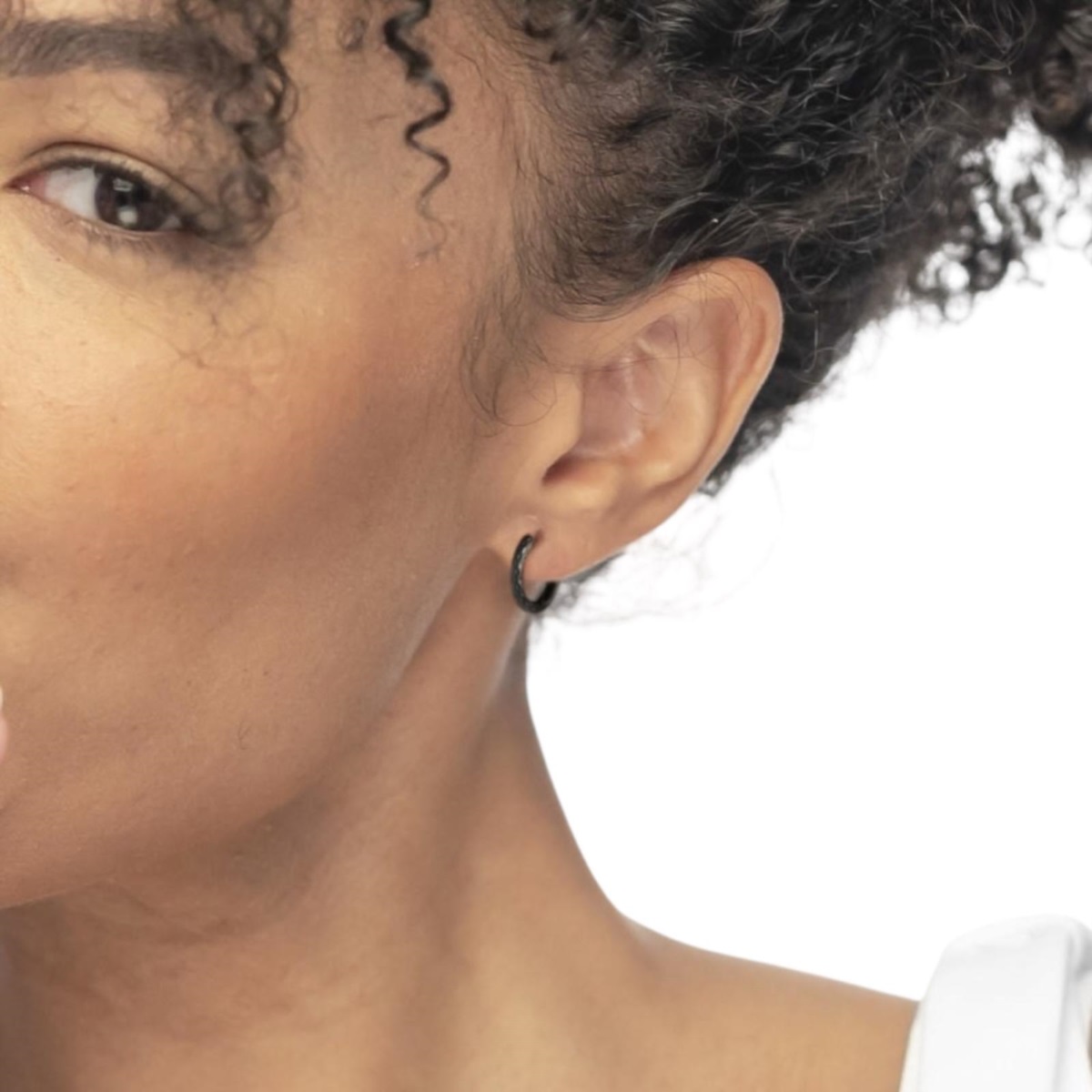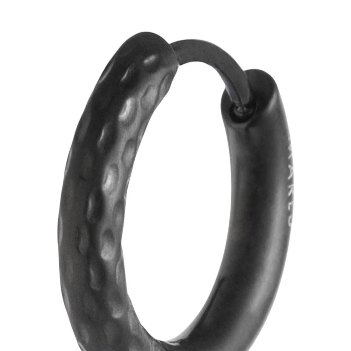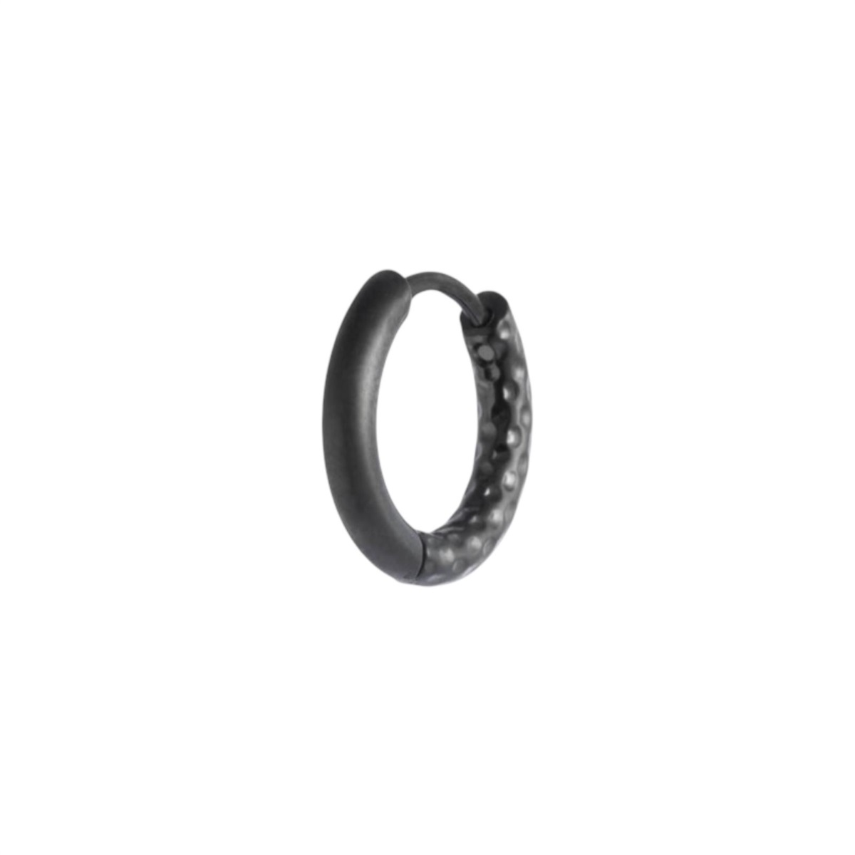 Mono orecchino unisex Marlù della collezione Vision realizzato in acciaio color nero con metà trama diamantata e l'altra merà è liscia.