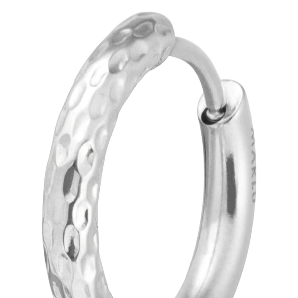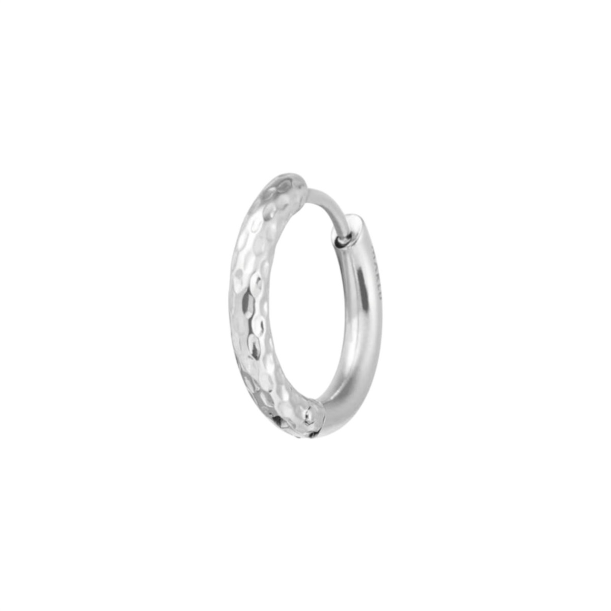 Mono orecchino unisex Marlù della collezione Vision realizzato in acciaio color silver con metà trama diamantata e l'altra merà è liscia.