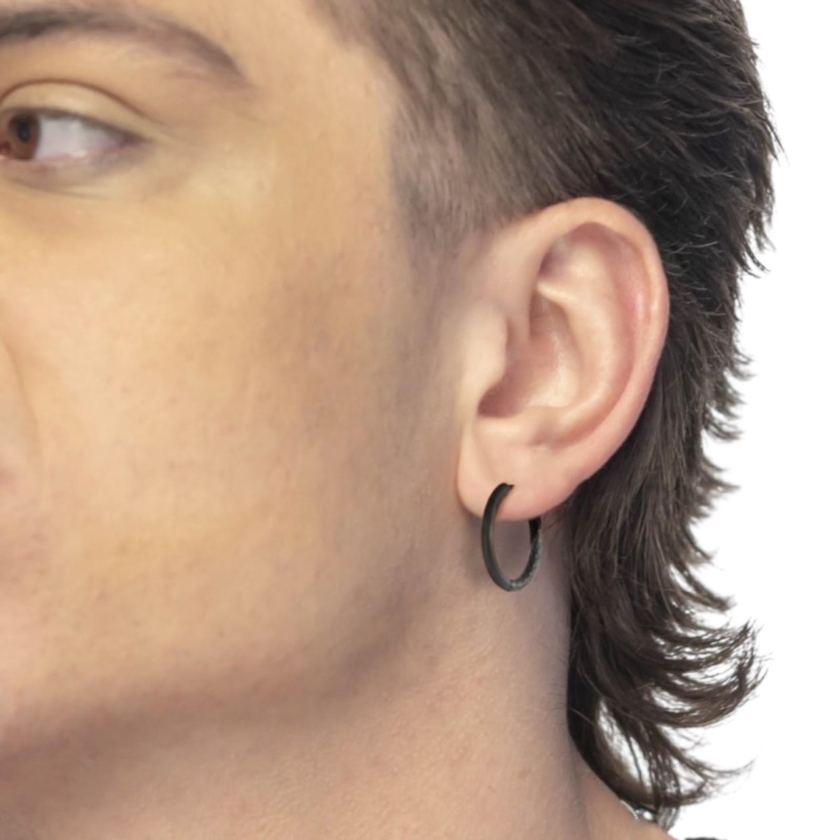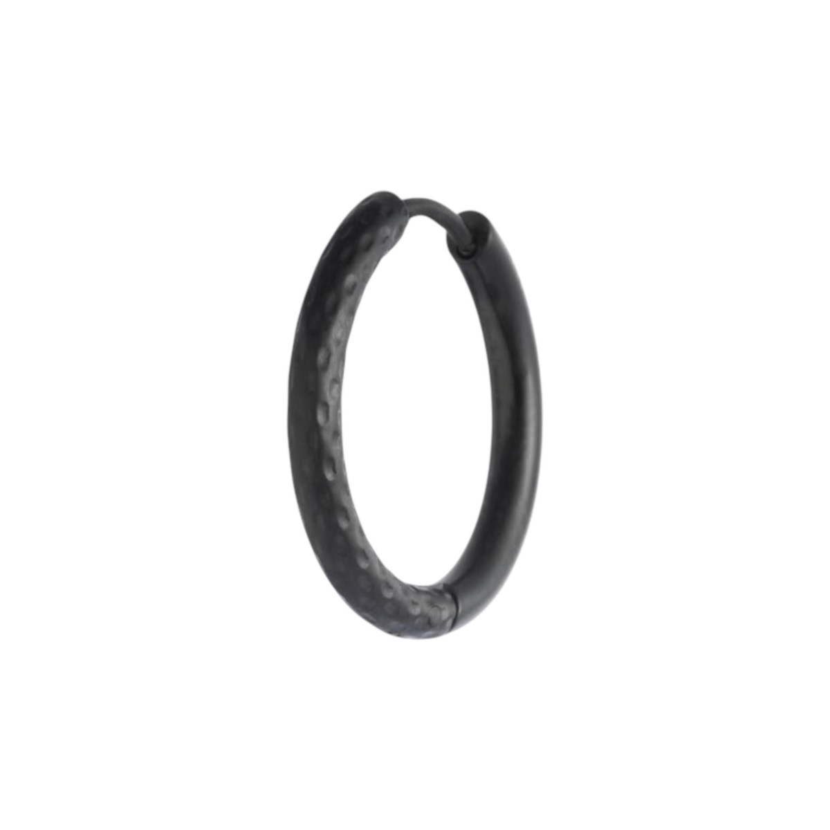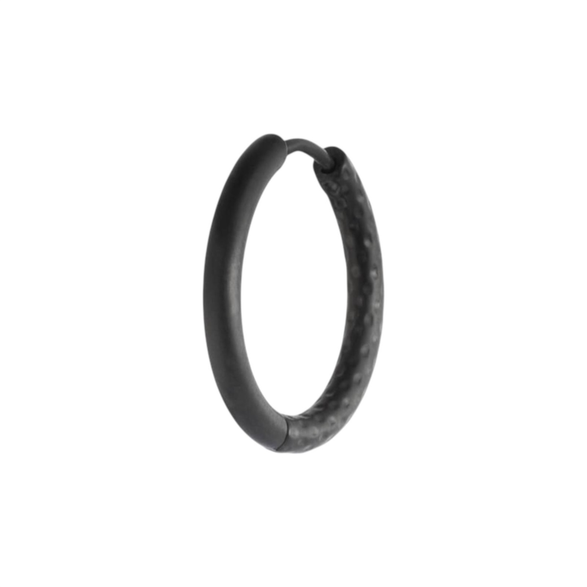 Mono orecchino unisex Marlù della collezione Vision realizzato in acciaio color nero con metà trama diamantata e l'altra merà è liscia.