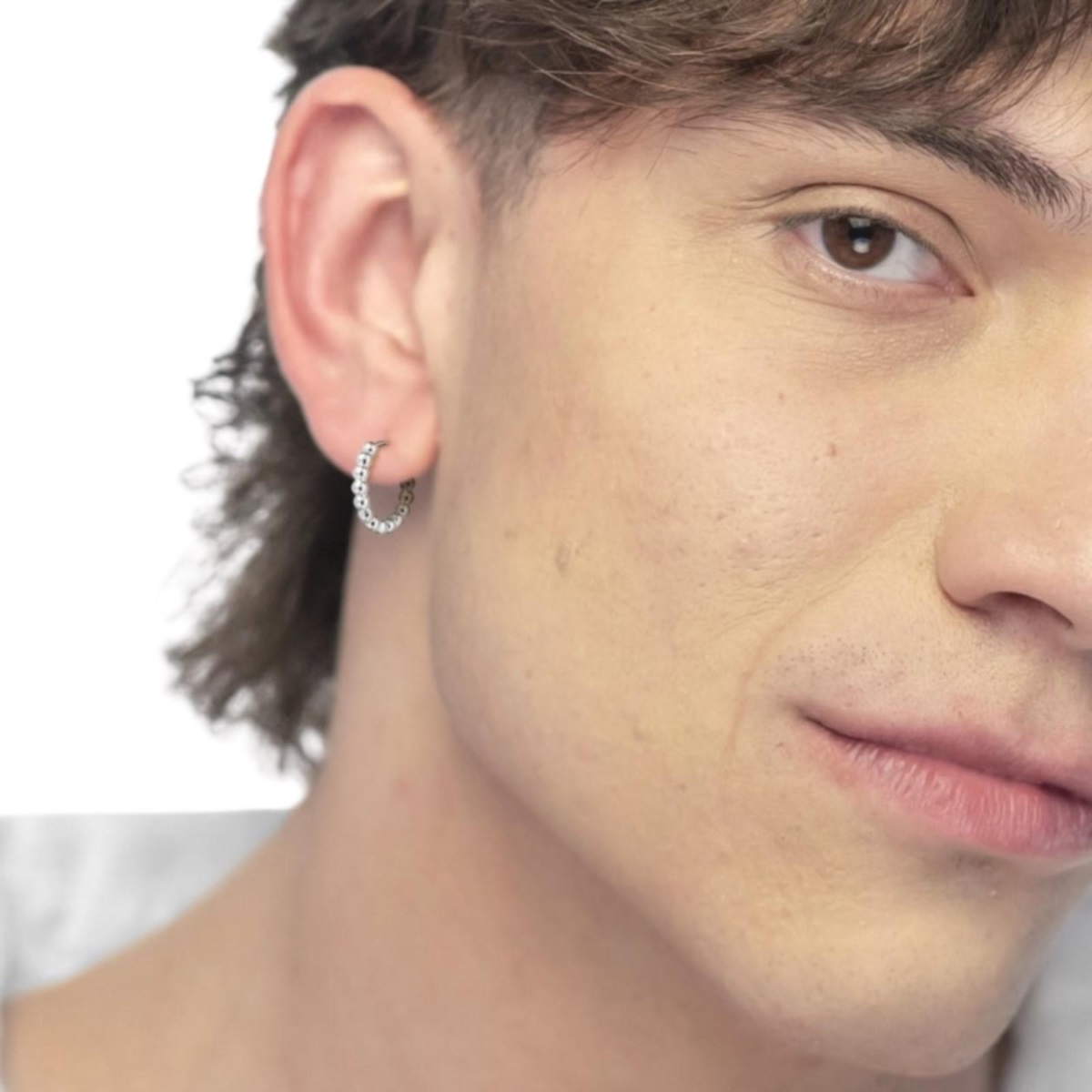 Mono orecchino unisex Marlù della collezione Vision realizzato in acciaio color silver con trama a sfere.