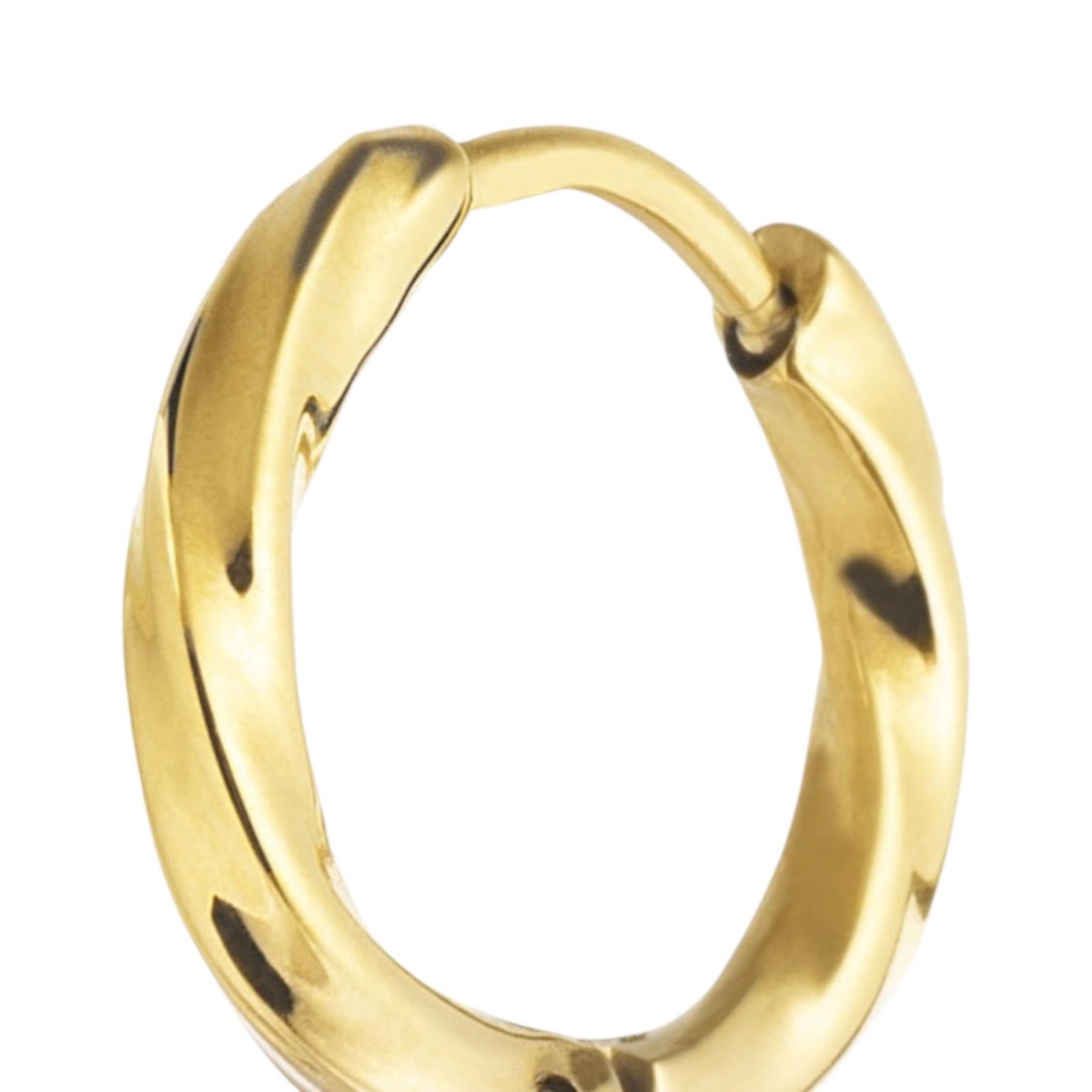 Mono orecchino unisex Marlù della collezione Vision realizzato in acciaio color oro giallo a cerchio ritorto.