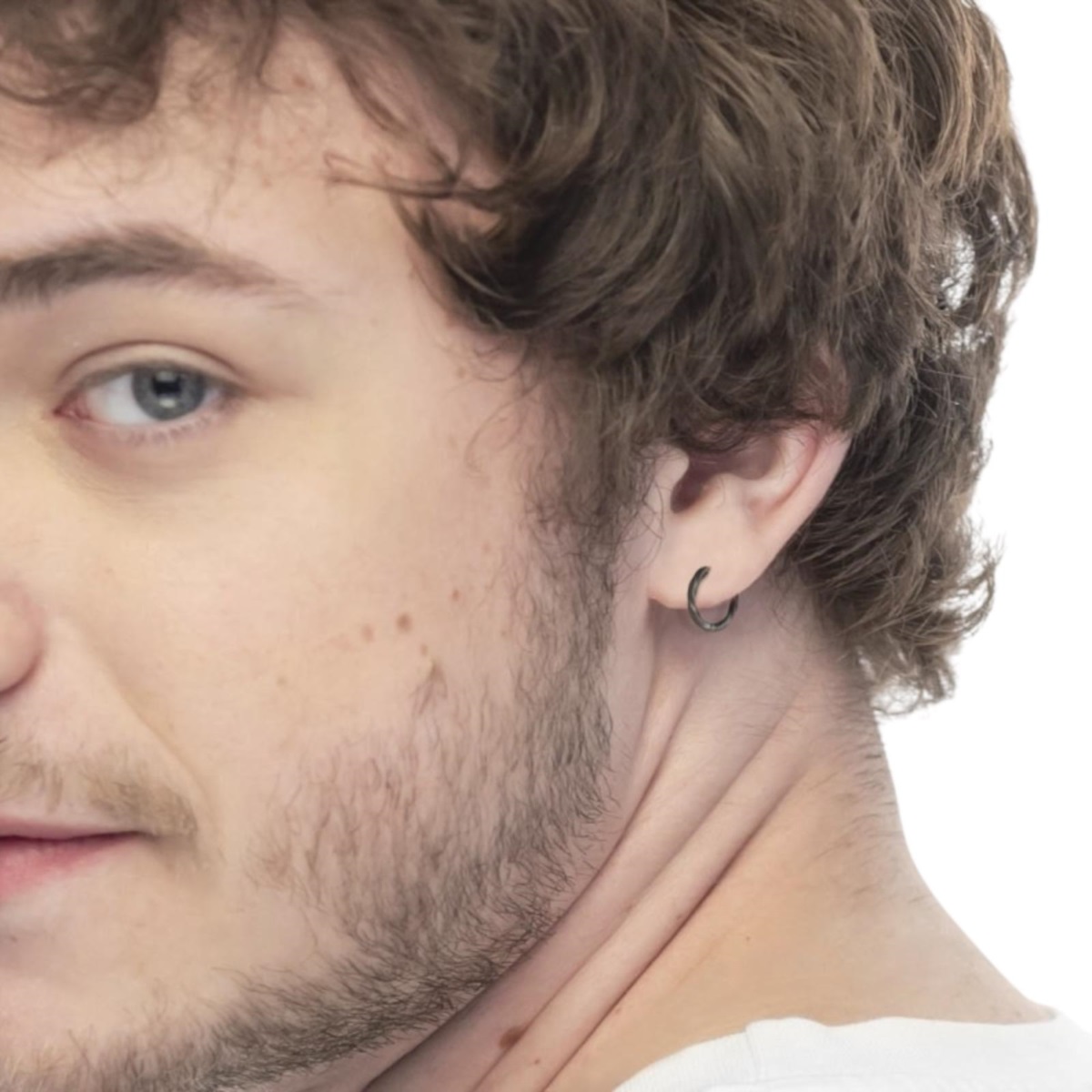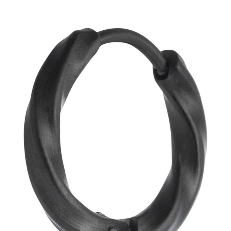 Mono orecchino unisex Marlù della collezione Vision realizzato in acciaio color nero a cerchio ritorto.