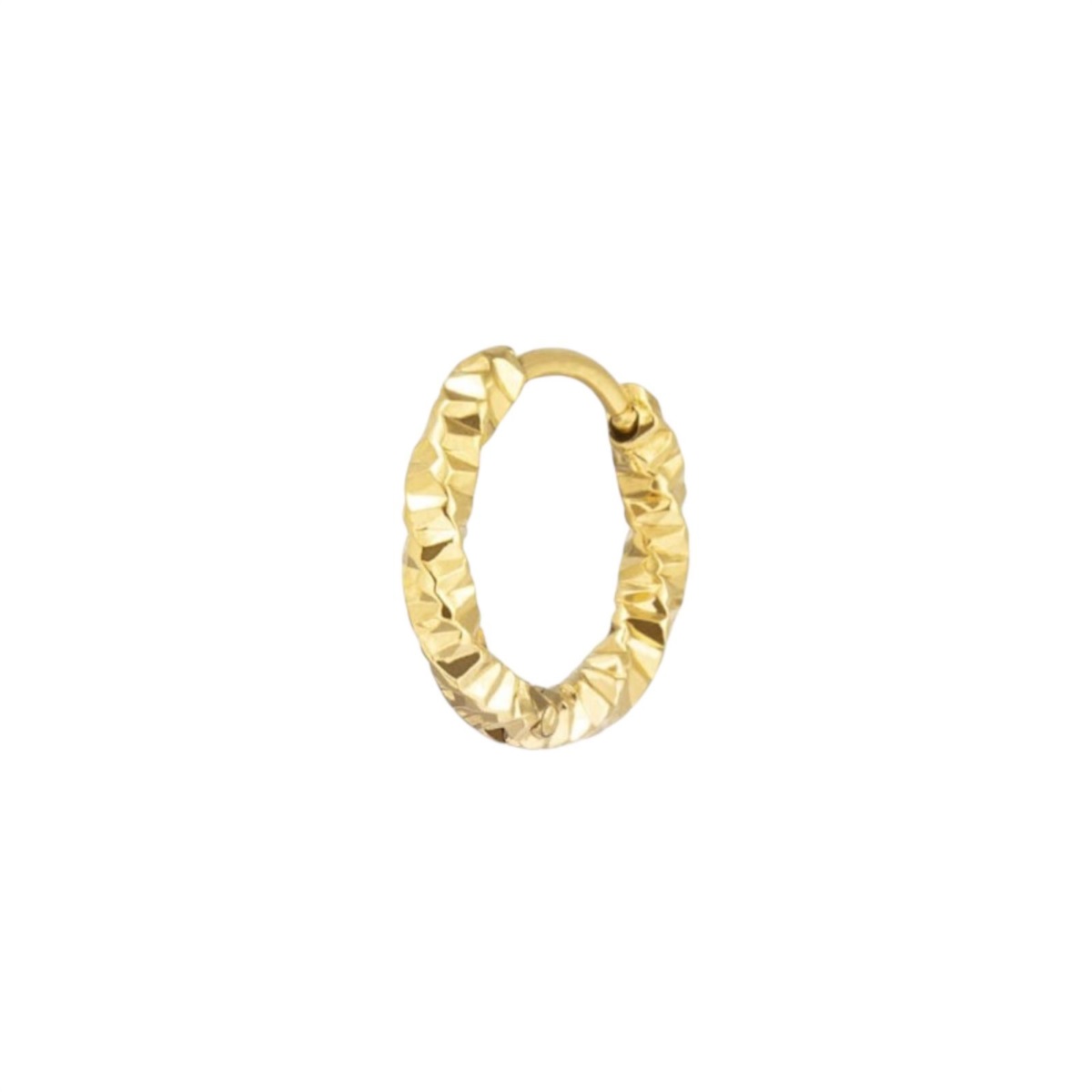 Mono orecchino unisex Marlù della collezione Vision realizzato in acciaio color oro giallo a cerchio con trama diamantata.