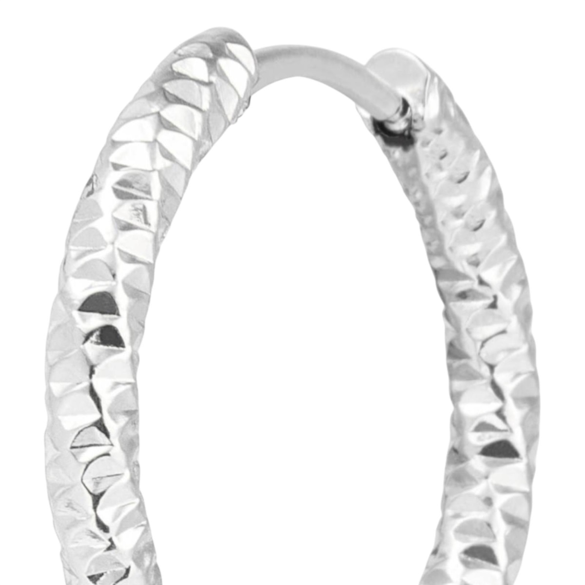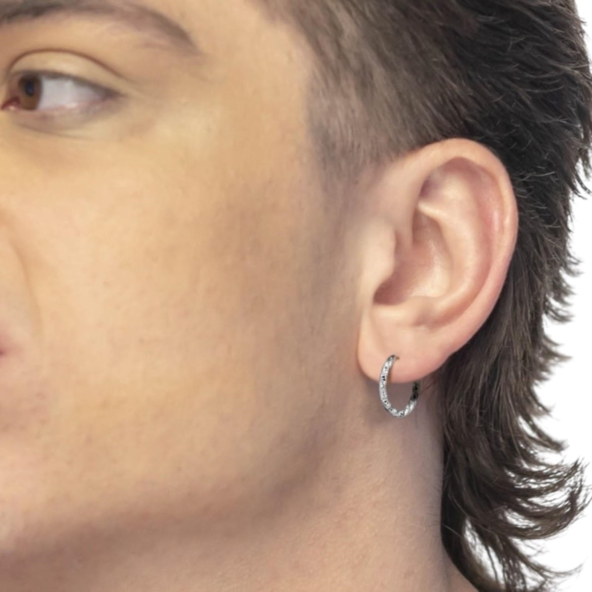 Mono orecchino unisex Marlù della collezione Vision realizzato in acciaio color silver a cerchio con trama diamantata.