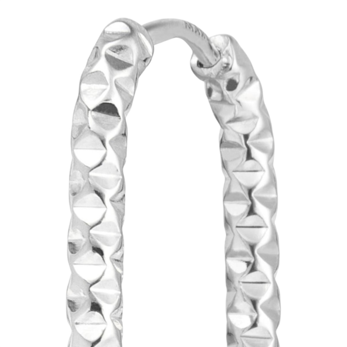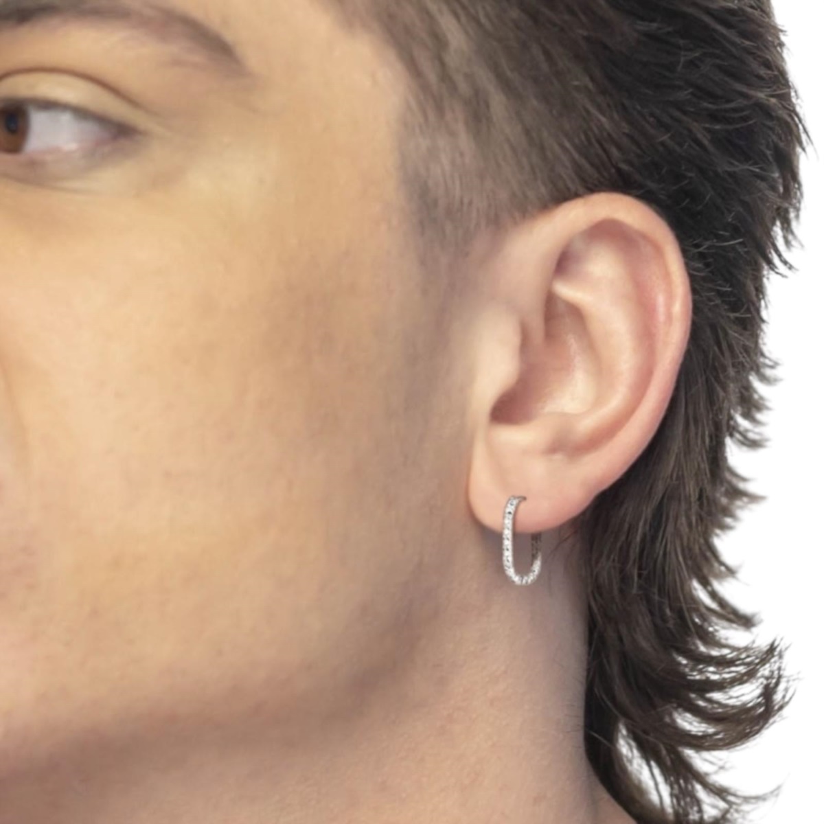 Mono orecchino unisex Marlù della collezione Vision realizzato in acciaio color silver ovale con trama diamantata.
