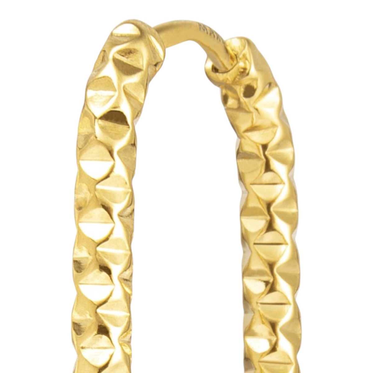 Mono orecchino unisex Marlù della collezione Vision realizzato in acciaio color oro giallo ovale con trama diamantata.