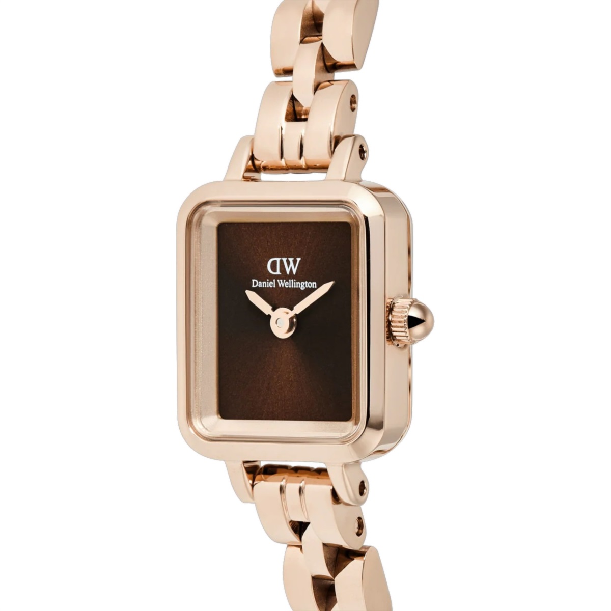 Orologio donna Daniel Wellington della collezione Quadro Mini realizzato con cassa in acciaio color oro rosa con un diametro di 15.4 x 18.2 mm.