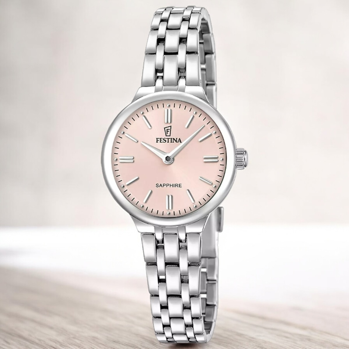 Orologio donna Festina della collezione Mademoiselle realizzato con cassa in acciaio color silver con un diametro di 26 mm e uno spessore di 6.65 mm.