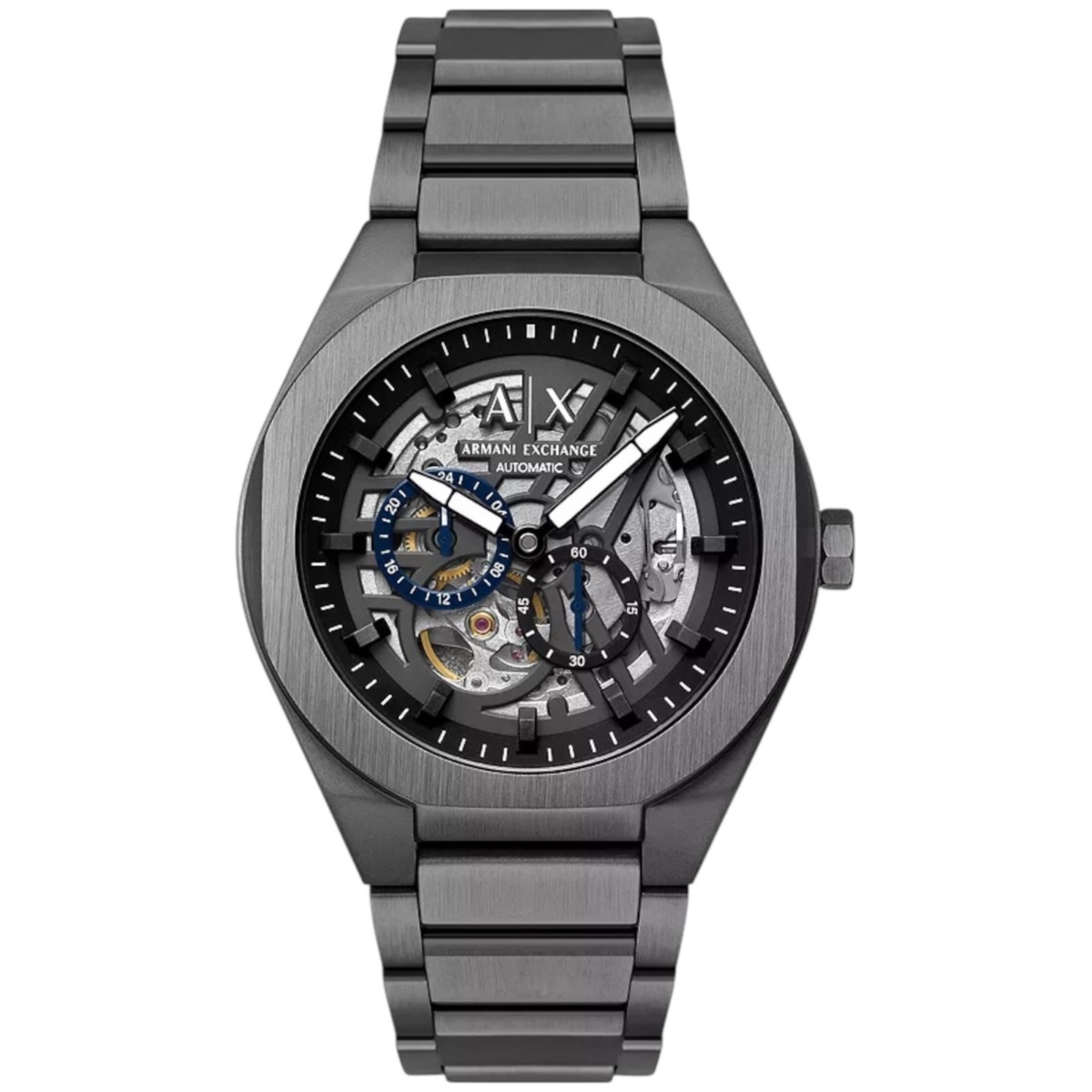 Orologio uomo Armani Exchange della collezione Sync realizzato con cassa in acciaio color canna di fucile con un diametro di 44 mm e uno spessore di 13 mm.