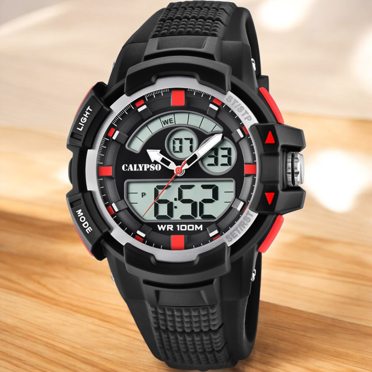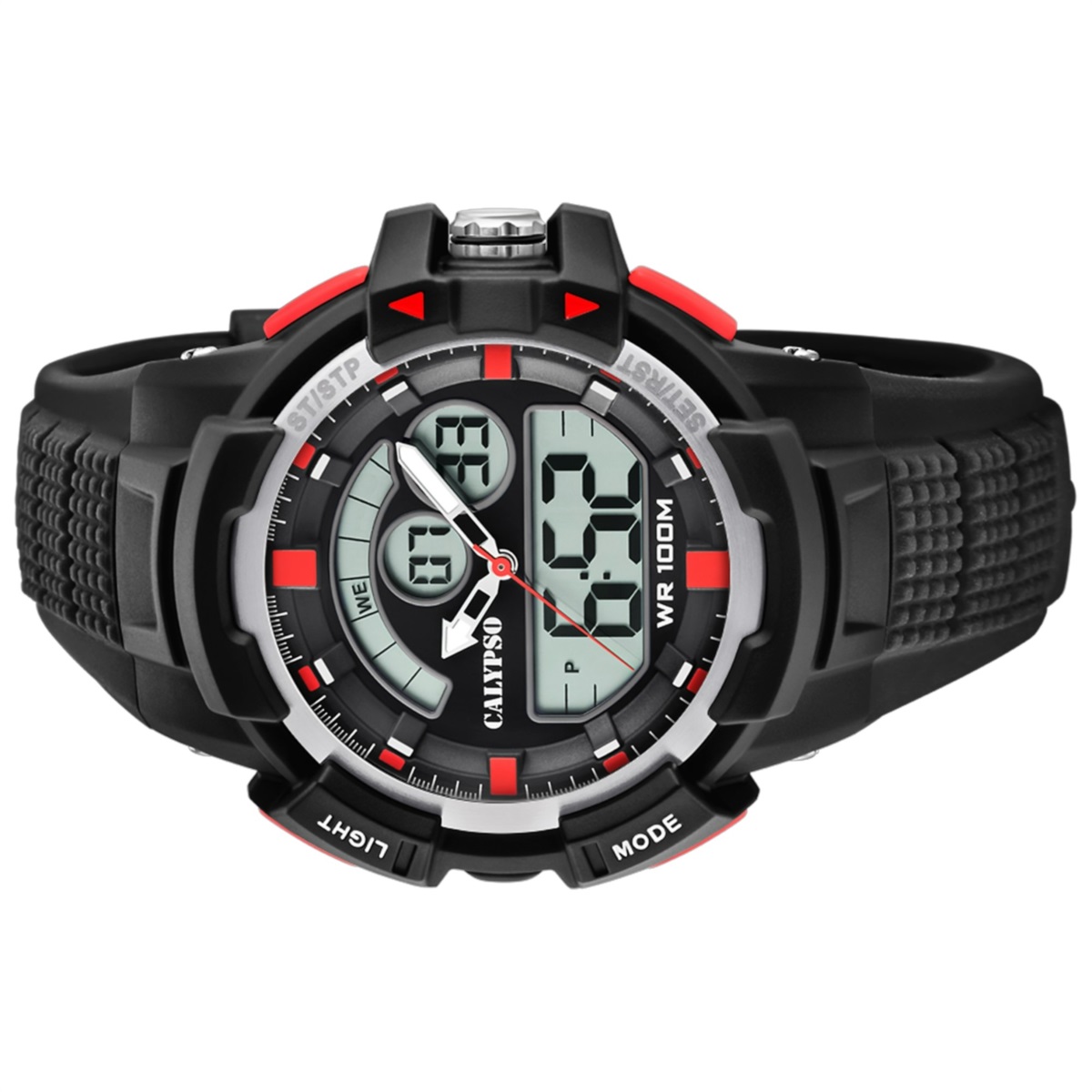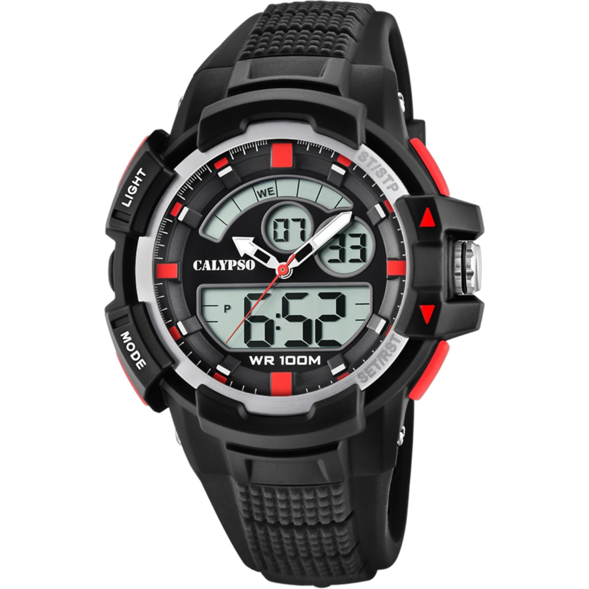 Orologio uomo Calypso della collezione Flash Time realizzato con cassa in plastica color nero con un diametro di 52.5 mm e uno spessore di 18.55 mm.