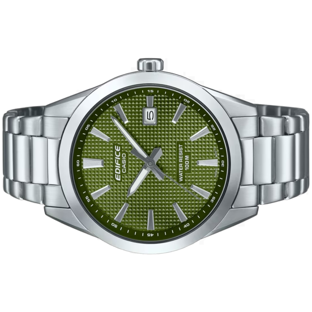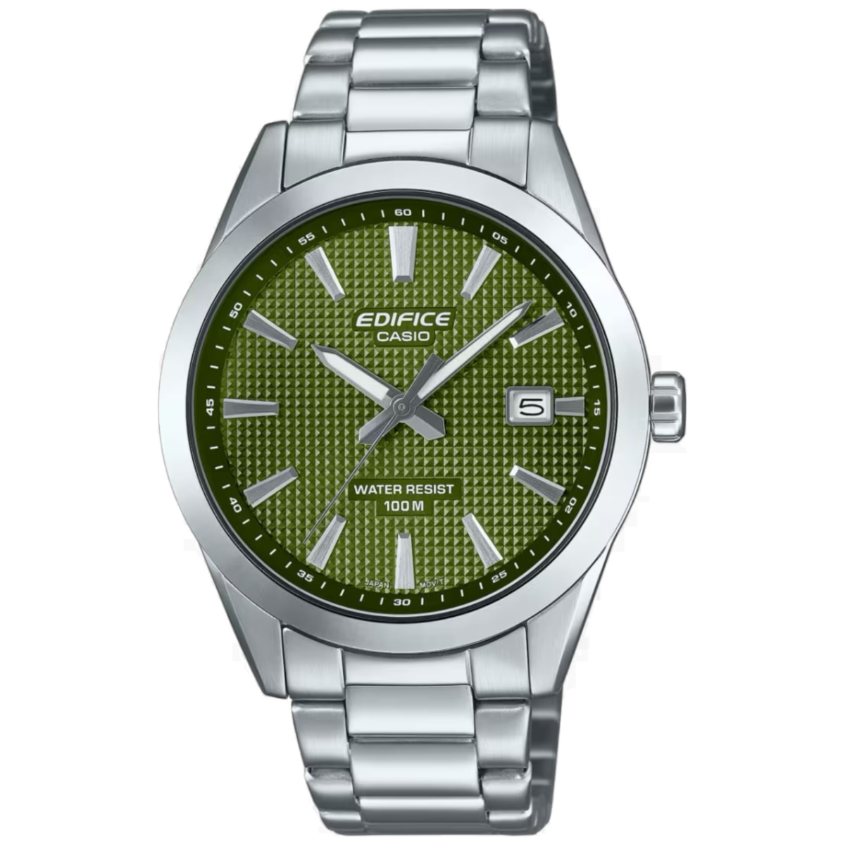 Il quadrante è color verde con indici color silver e datario. Ha un vetro minerale, la resistenza all'acqua è di 10 ATM e ha un peso di 110gr.