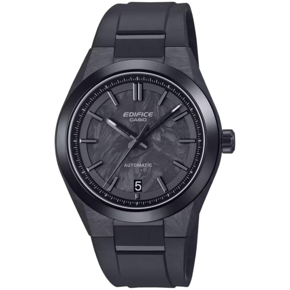 Orologio uomo Casio Edifice della collezione Automatico realizzato con cassa in carbonio e acciaio color nero con un diametro di 45 x 40 mm e uno spessore di 12.5 mm.