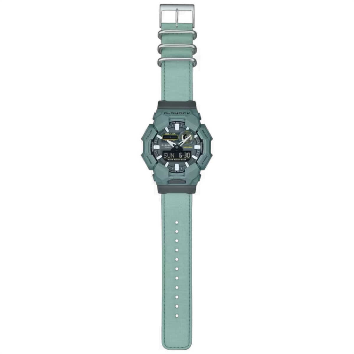 Orologio uomo Casio G-Shock della collezione Classic realizzato con cassa in resina e carbonio a base biologica con un diametro di 55.1 x 51.9 e uno spessore di 17.5.