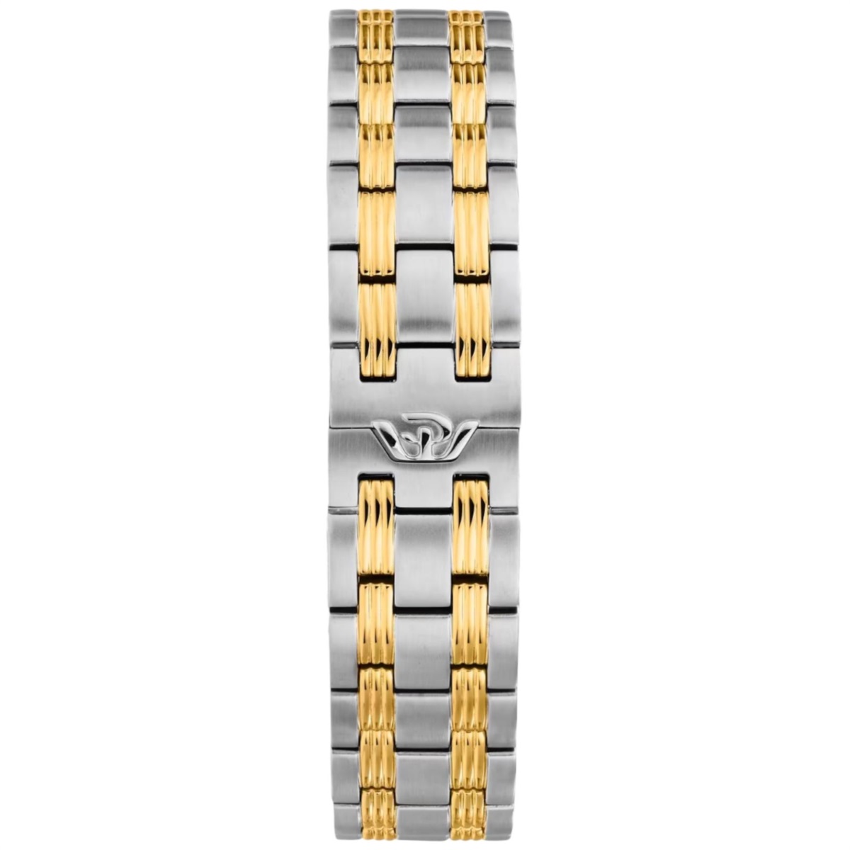 Il cinturino è realizzato in acciaio bicolore silver e oro giallo con una chiusura deployante con doppio pulsante.